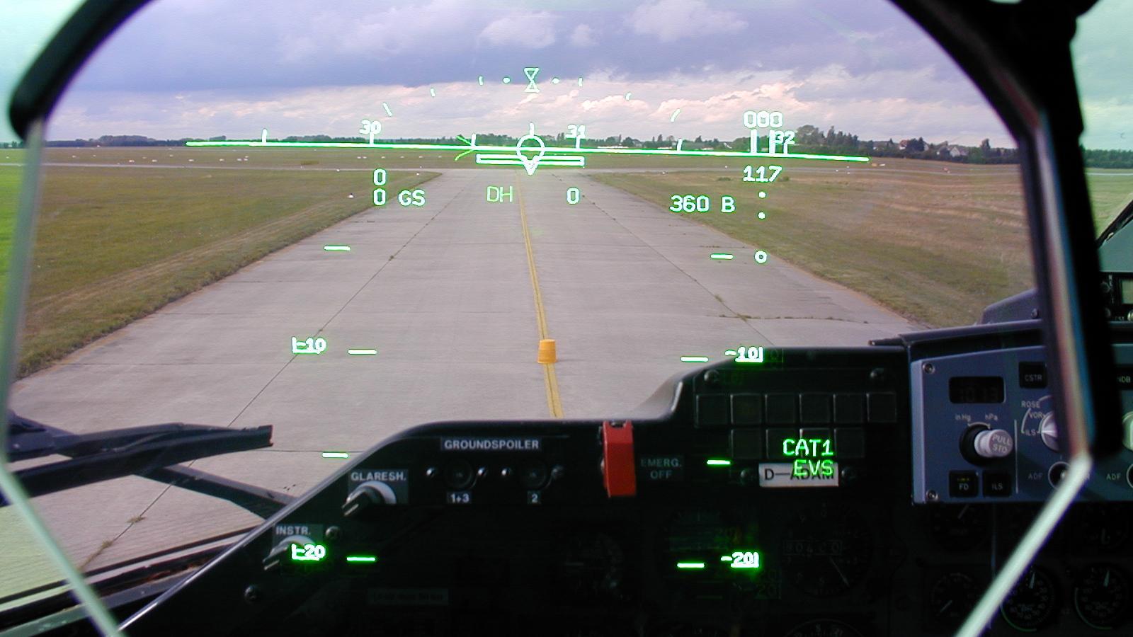 Das Head Up-Display im DLR-Forschungsflugzeug ATTAS (Advanced Technologies Testing Aircraft System) unterstützt den Piloten zusätzlich mit einer künstlichen Außensicht, der so genannten Enhanced Vision.