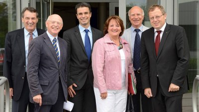 Im Bild (von links nach rechts): Rainer Hange, Mitglied des FDP-Kreisvorstands Starnberg, Klaus Breil, Mitglied des Bundestags und Energiepolitischer Sprecher der FDP-Bundestagsfraktion aus dem Wahlkreis Weilheim, Prof. Dr. Markus Rapp, Direktor des DLR-Instituts für Physik der Atmosphäre, Bundesjustizministerin Sabine Leutheusser-Schnarrenberger, Rainer Sobek, Ortsvorsitzender der FDP Krailling, Prof. Dr. Johann-Dietrich Wörner, Vorstandsvorsitzender des DLR.