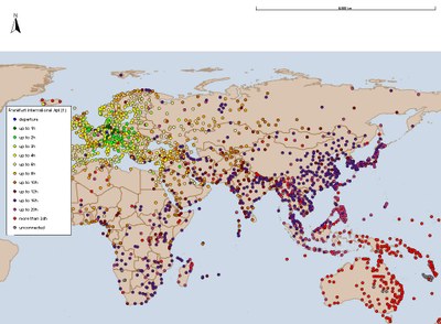 Darstellung der Anbindung eines Flughafens an das internationale Luftverkehrsnetz