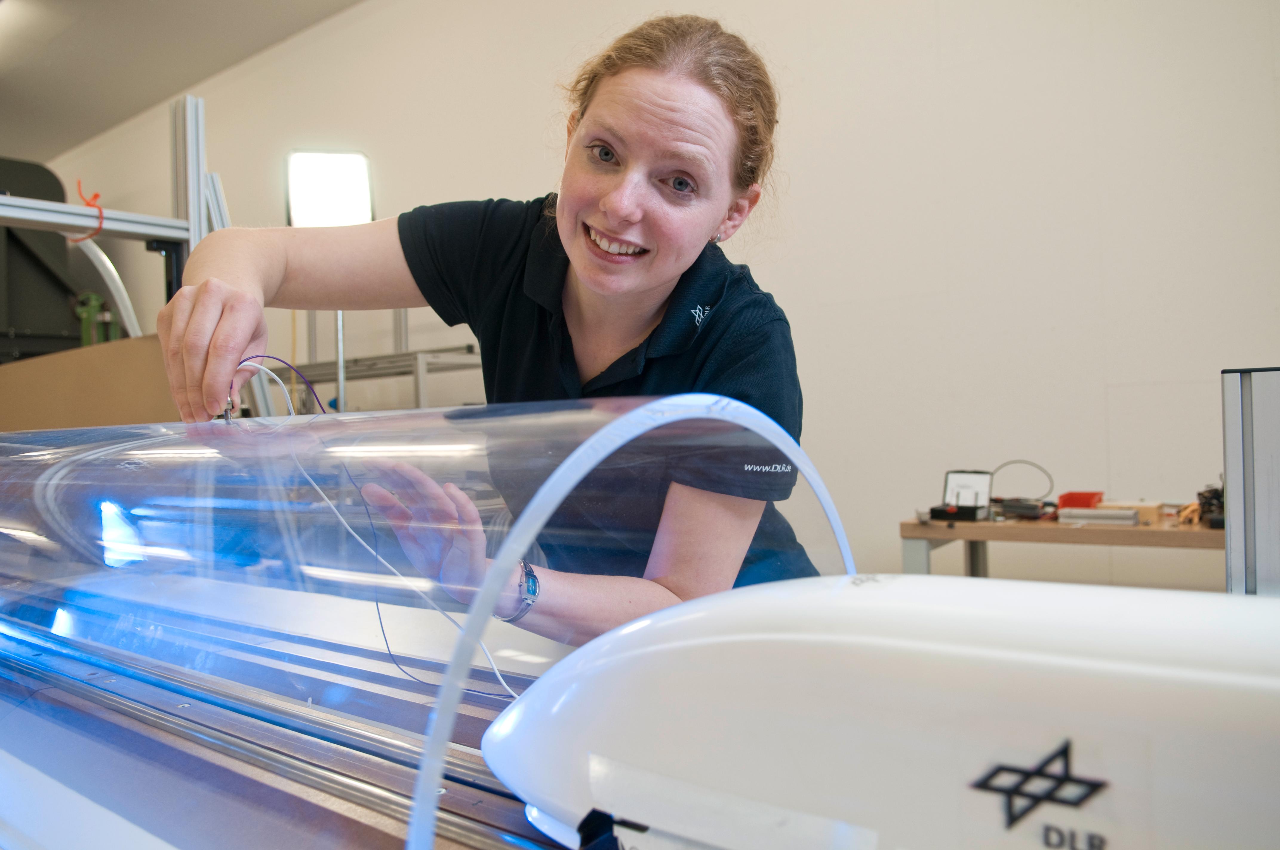 Die Pysikerin Daniela Heine arbeitet am DLR-Institut für Aerodynamik und Strömungstechnik in Göttingen. Dort forscht sie in der Tunnelsimulationsanlage an Modellen von Hochgeschwindigkeitszügen. Ziel ihrer Forschung ist es die Druckwellen bei der Ein- und Ausfahrt der Tunnel zu regulieren. Damit will sie unter anderem das Taubheitsgefühl auf den Ohren der Reisenden in den Tunneln mindern.