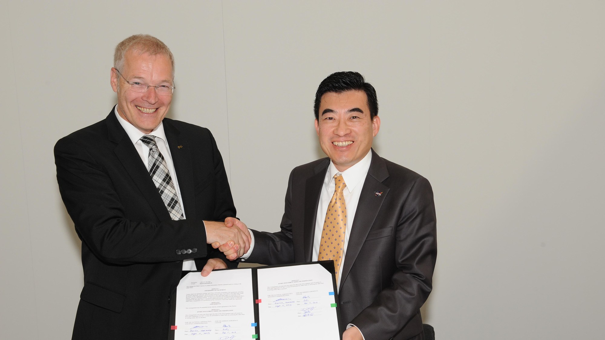 Prof. Rolf Henke und Dr. Jaiwon Shin nach der Unterzeichnung des Abkommens