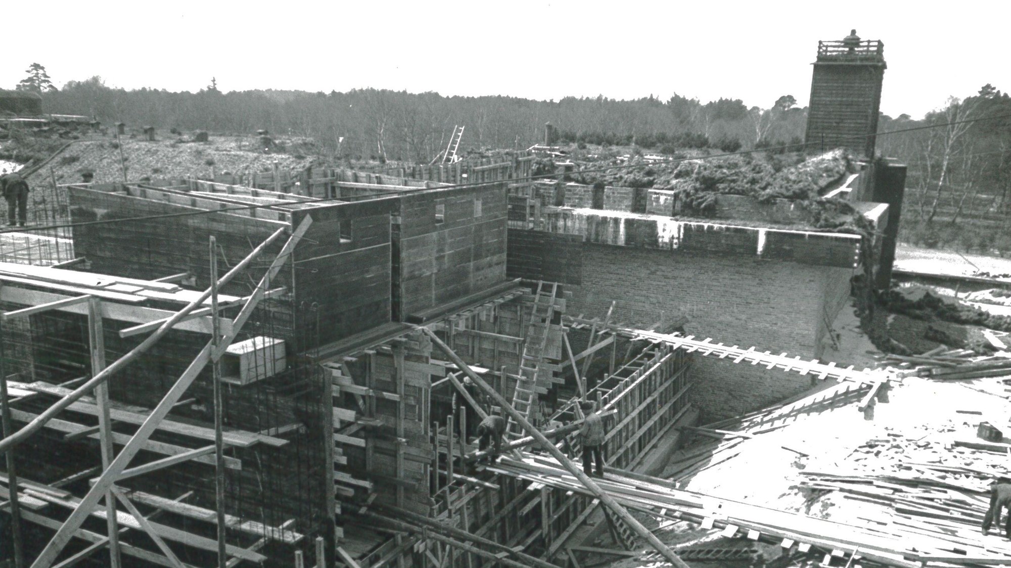 1942: Bau des Gebäudes G1-C1, des 100-Tonnen-Sänger-Prüfstands, in einem frühen Baustadium.