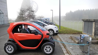 "Elektromobilität ist eine Herausforderung. Hier im DLR wurde ein Anfang gemacht und ich hoffe, dass weitere große Schritte schon bald folgen", so Martin Häusler (im Bild), Leiter der DLR-Bodenstation in Weilheim und erster Nutzer der E-Tankstelle.