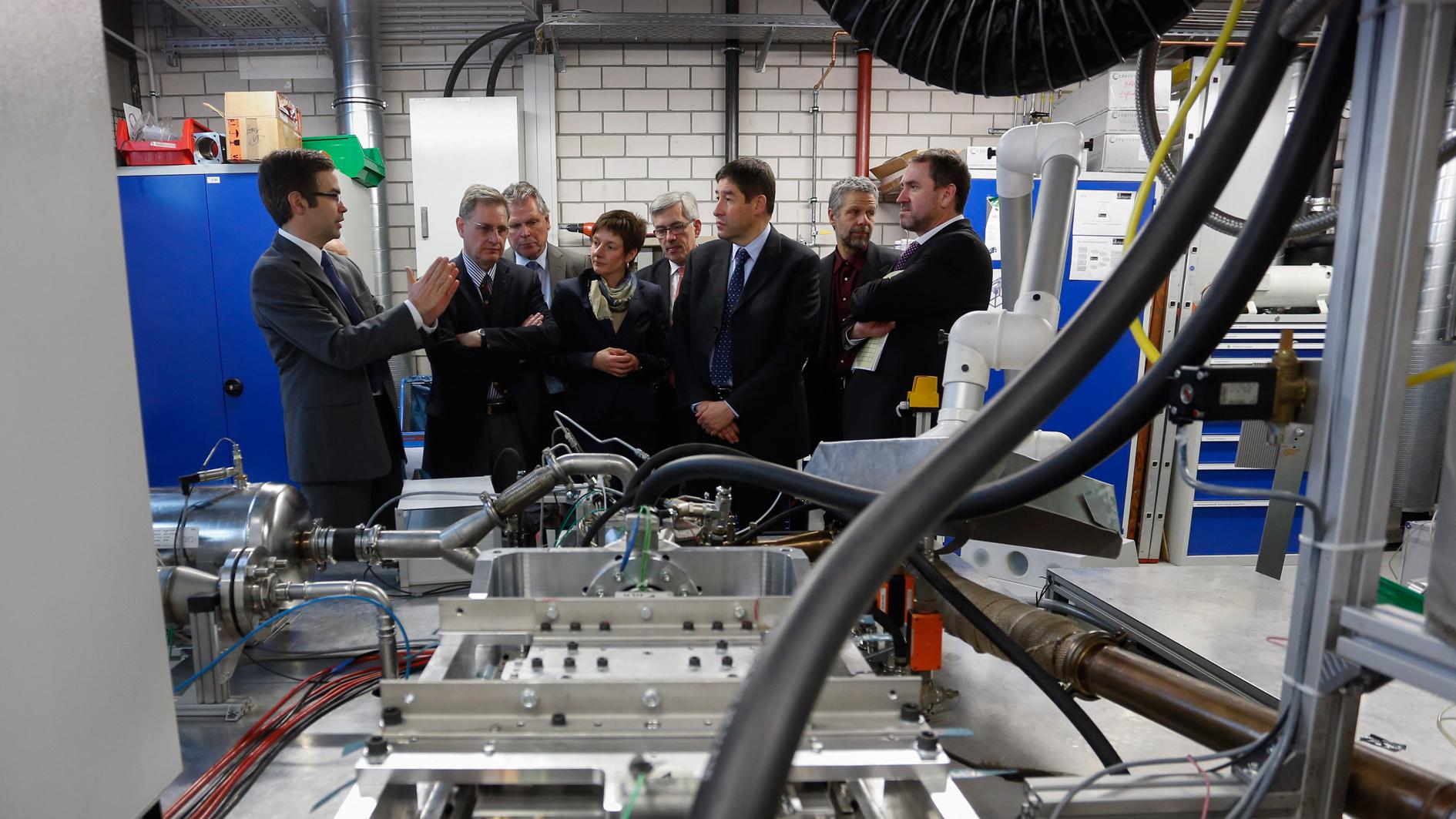 Von links nach rechts: Dr. Frank Rinderknecht und Prof. Horst E. Friedrich vom Institut für Fahrzeugkonzepte, Christof Kindervater (Institut für Bauweisen- und Konstruktionsforschung), Dr. Anke Kovar (Standortleitung Stuttgart), Dr. Peter Mendler und Ministerialdirektor Rolf Schumacher (Finanz- und Wirtschaftsministerium Baden-Württemberg), Dr.-Ing. Reiner Buck (Institut für Solarforschung) und Uwe Alle (Finanz- und Wirtschaftsministerium Baden-Württemberg).