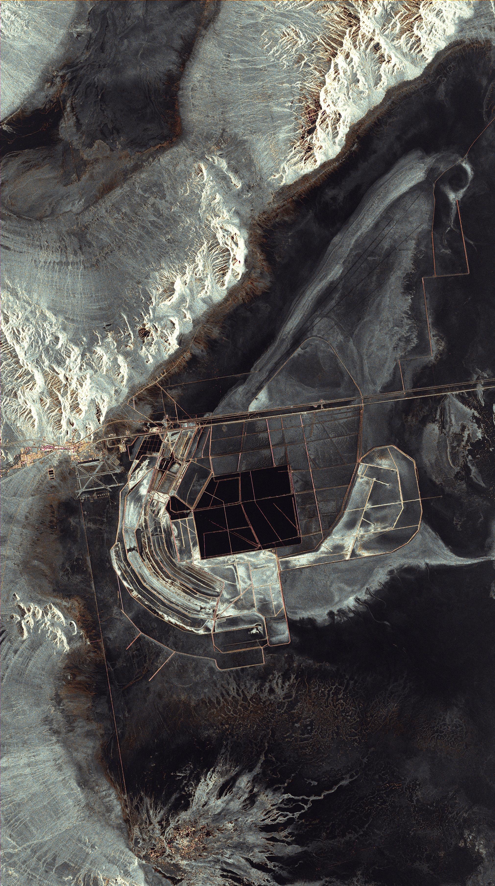 Der Radarsatellit TerraSAR-X des Deutschen Zentrums für Luft- und Raumfahrt (DLR) umrundet die Erde in einer Höhe von 514 Kilometern. Am 23.Juni 2009 um 13.40 Uhr Ortszeit nahm er die Bonneville Salt Flats in den USA auf. Schwarz steht für die Wasserflächen und für die Radarimpulse, die der Satellit aussendet und die nicht zurückkommen, da sie von der glatten Wasseroberfläche vom Satelliten wegreflektiert werden. Auffällig bei dem Radarfoto aus dem All ist dabei die Stadt Wendover, die in der linken oberen Hälfte des Bildes in ihrer vollen Pracht leuchtet.