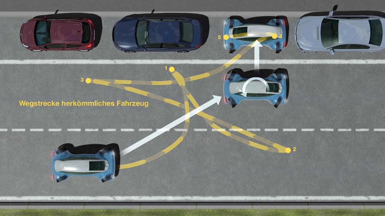 Durch die Einzelradlenkung im "Krabben- oder Hundegang" kann ROMO schräg und seitwärts fahren sowie auf der Stelle drehen.