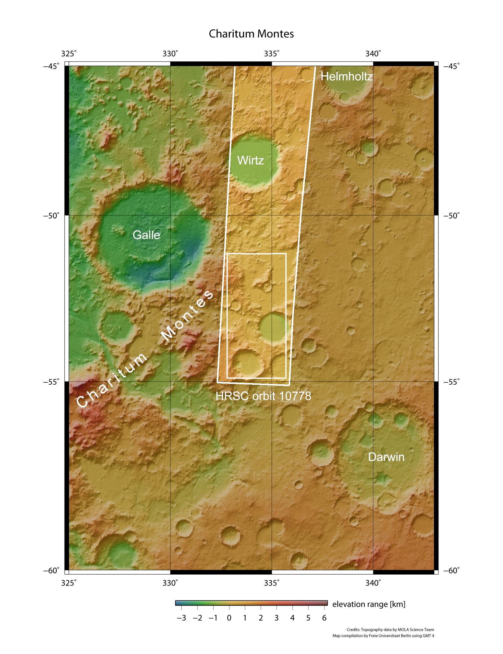 Die Charitum-Berge (Charitum Montes) verlaufen parallel zum südlichen Rand des Argyre-Einschlagsbeckens durch das Marshochland. Am 18. Juni 2012 nahm die vom Deutschen Zentrum für Luft- und Raumfahrt (DLR) betriebene, hochauflösende Stereokamera HRSC auf der ESA-Raumsonde Mars Express während Orbit 10.778 einen Teil dieser Bergkette auf. Die im Artikel gezeigten Bilder stammen aus dem kleinen Rechteck innerhalb des HRSC-Bildstreifens.
