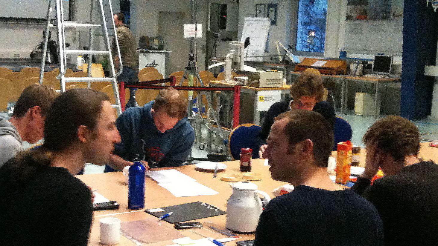 DLR-Mitarbeiter beim Einpacken der Gewinnerpakete und Trostpreise.
