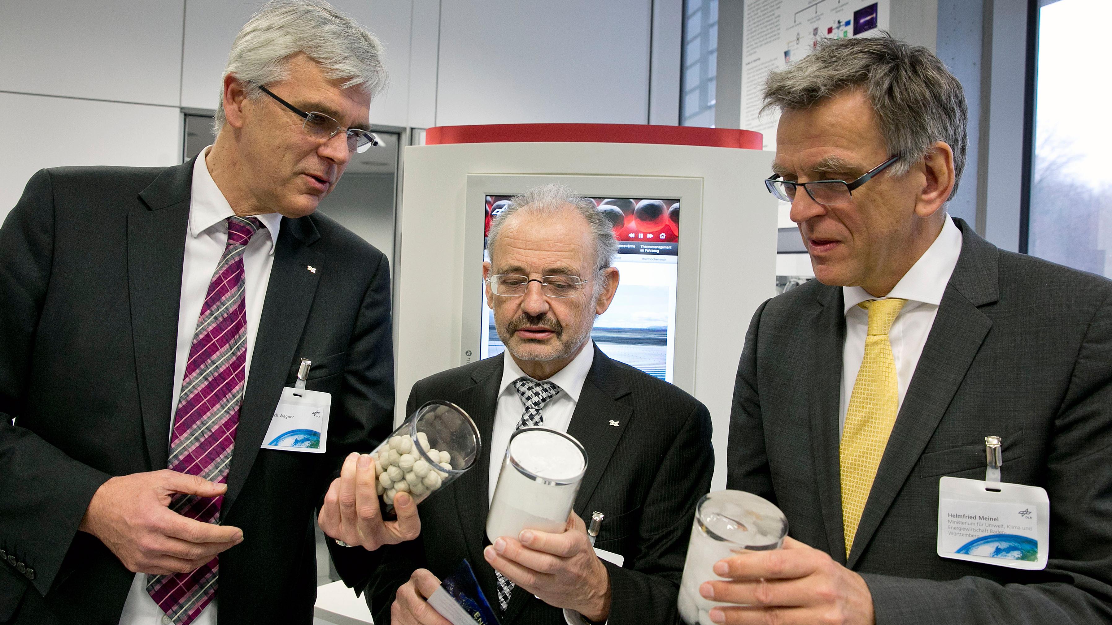 Von links nach rechts: DLR-Vorstand für Energie und Verkehr Prof. Ulrich Wagner, Dr. Rainer Tamme vom DLR-Institut für Technische Thermodynamik und Ministerialdirektor Helmfried Meinel aus dem baden-württembergischen Ministerium für Umwelt, Klima und Energiewirtschaft