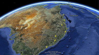 Empfangene ADS-B-Signale über Australien