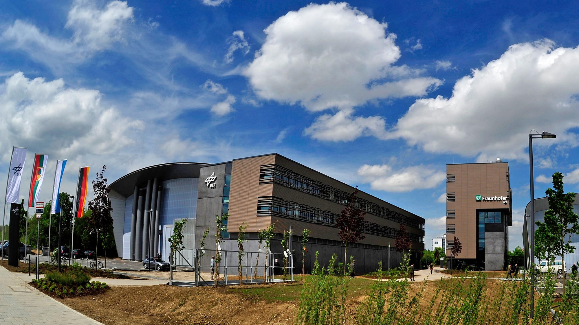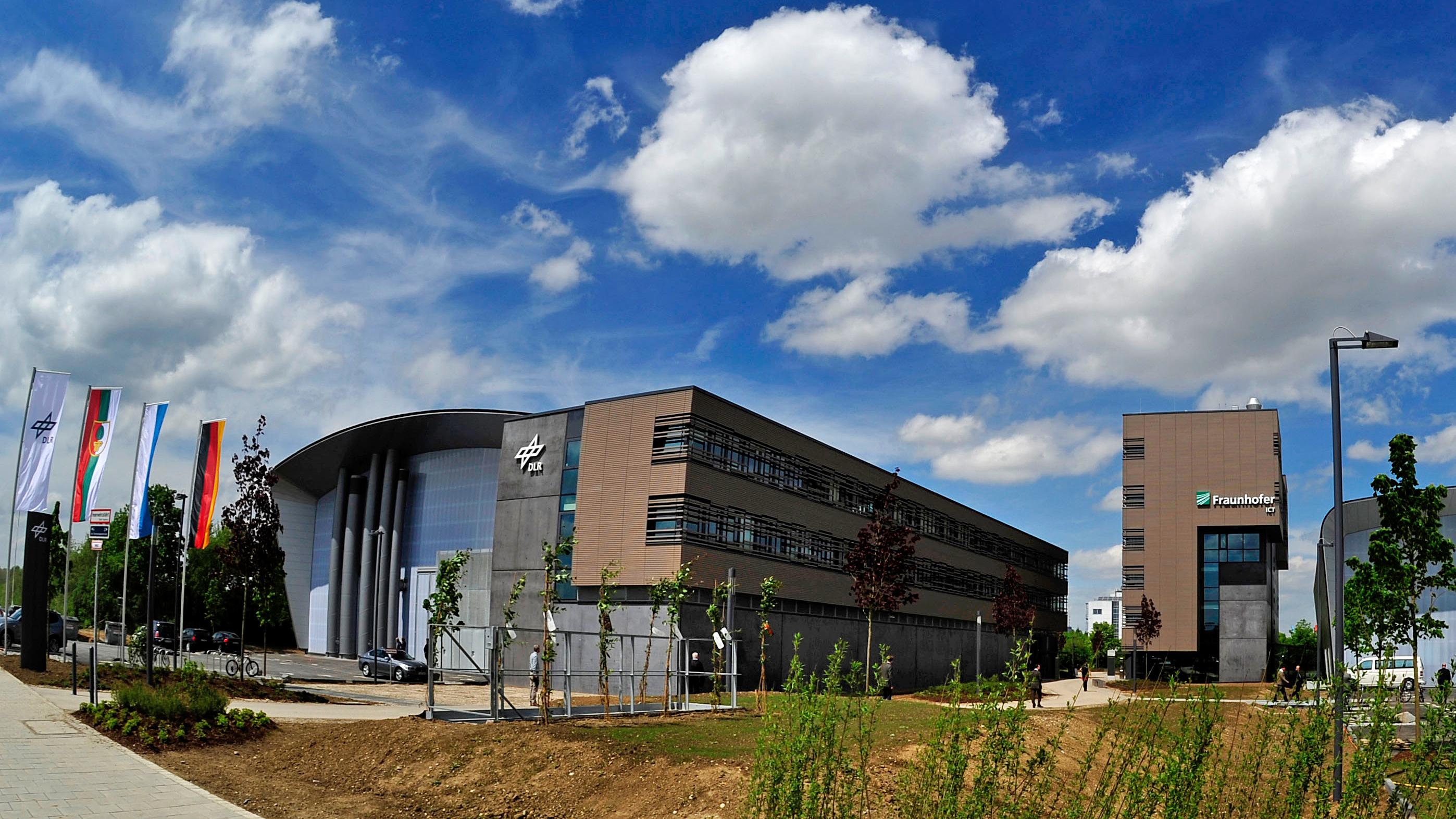 Carbonfaserverstärkte Kunststoffe (CFK) sind der Leichtbauwerkstoff der Zukunft. Der steigende Bedarf in der Luft- und Raumfahrt sowie in der Automobil- und Maschinenbauindustrie macht dabei wirtschaftliche Produktionsweisen in höchster Qualität erforderlich. Mit diesem Ziel entwickelt das DLR in Augsburg erstmals einen durchgängigen Produktionsprozess für CFK-Bauteile, der roboterbasiert automatisiert ist. Der dafür errichtete Gebäudekomplex besteht aus einer Hallenanlage für Labore (links) und einem direkt angegliederten Büro-und Administrationsgebäude. Der Bau des ZLP entstand nach Plänen des Architektenbüros Enno Schneider.