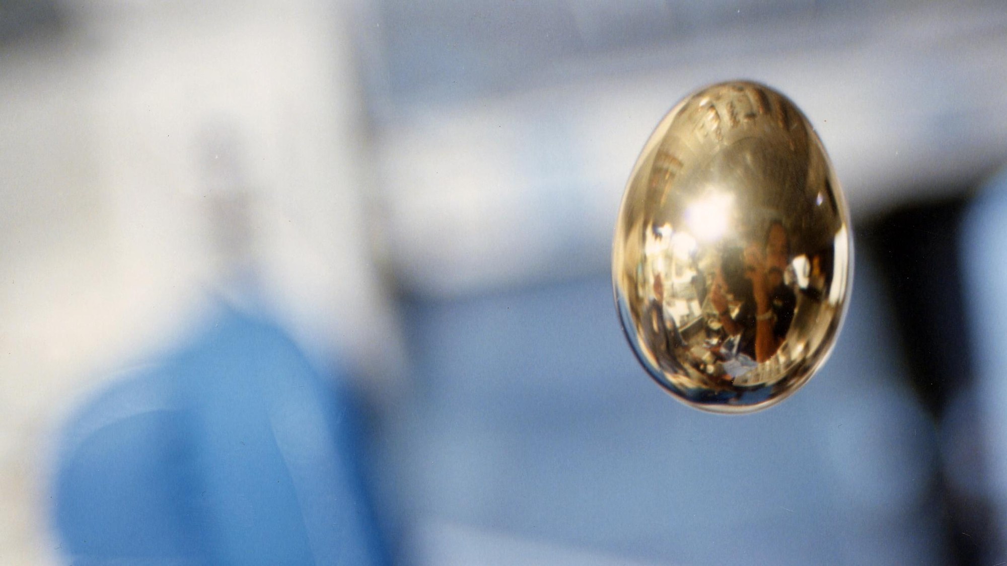 Im Weltraum gelten die Gesetze der Erdanziehungskraft nicht: Dieses goldene Ei schwebte während der D1-Mission im Spacelab. Für ein Experiment während der Mission von Alexander Gerst können Schüler aus einer Liste aus 42 Versuchsgegenständen auswählen und daraus einen Versuch entwerfen. Zu diesem Ideenwettbewerb "Aktion 42" rufen das DLR, die ESA und die Stiftung Jugend forscht gemeinsam auf.