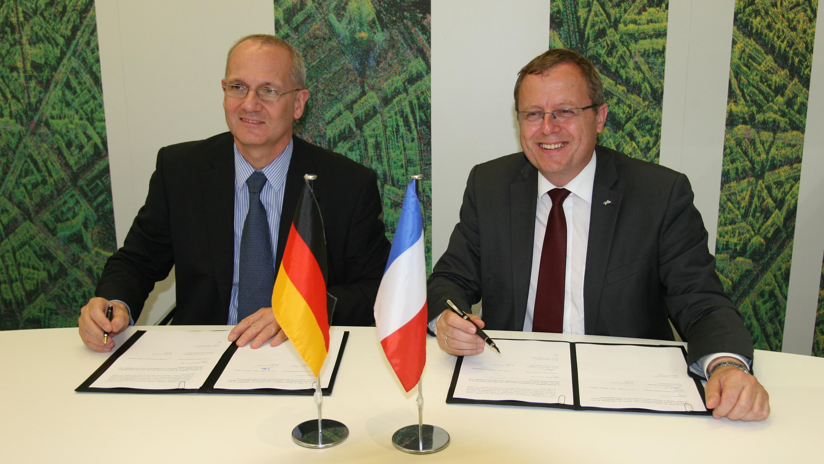 Prof. Johann-Dietrich Wörner, Vorstandsvorsitzender des Deutschen Zentrums für Luft- und Raumfahrt (DLR), und der Präsident der französischen Raumfahrtagentur CNES, Jean-Yves Le Gall, unterzeichneten auf der Paris Air Show eine Kooperationsvereinbarung für die Hayabusa2-Mission. Während der Mission wird der am DLR entwickelte, hüpfende Lander MASCOT (Mobile Asteroid Surface Scout) 2018 eine Landung auf einem Asteroiden durchführen und erstmals die Messung von Daten an verschiedenen Orten auf einem solchen Himmelskörper ermöglichen. Vier Instrumente werden an Bord des Landers sein - eines davon, das Spektrometer MicrOmega, steuert die französische Raumfahrtagentur CNES bei.