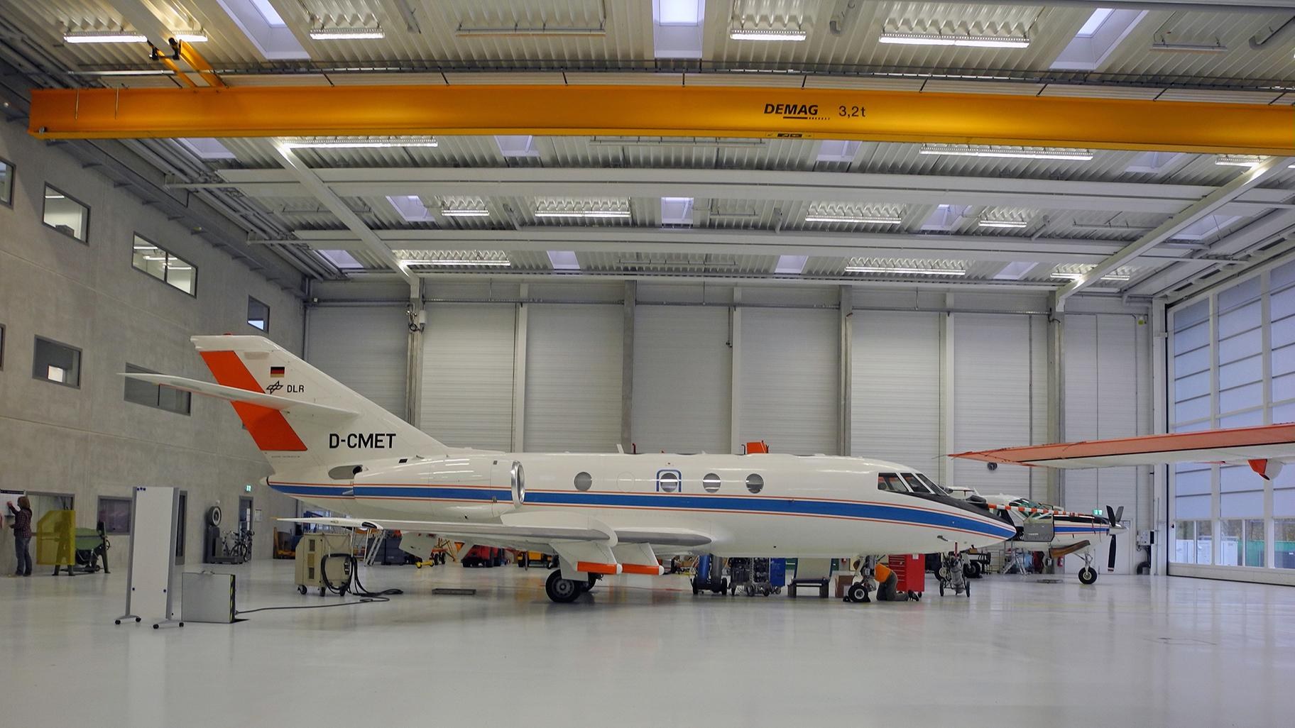 Die Falcon 20E des DLR wird hauptsächlich für die Messungen der Atmosphärenforschung eingesetzt und kam erst durch eine starke Modifizierung in den Bereich der Forschung.