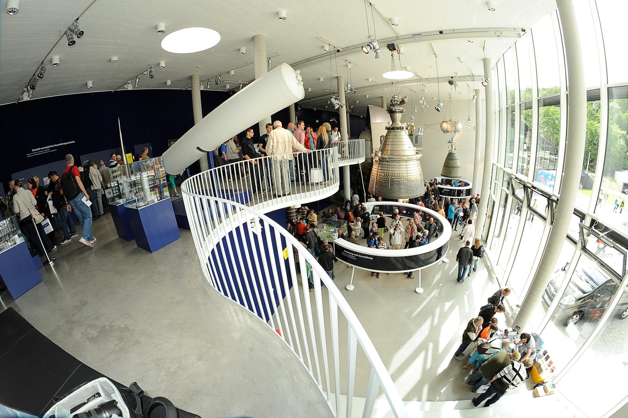 Bei der Ausstellung zu 50 Jahren Raumfahrgeschichte in Lampoldshausen lernen die Besucher, wie sich die Forschung an Raketentriebwerken weiterentwickelt hat.
