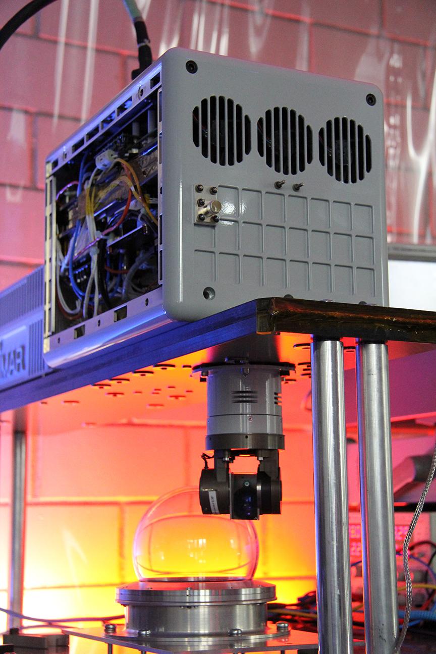 Laborintegration des Sendeterminals für die Laserkommunikation.