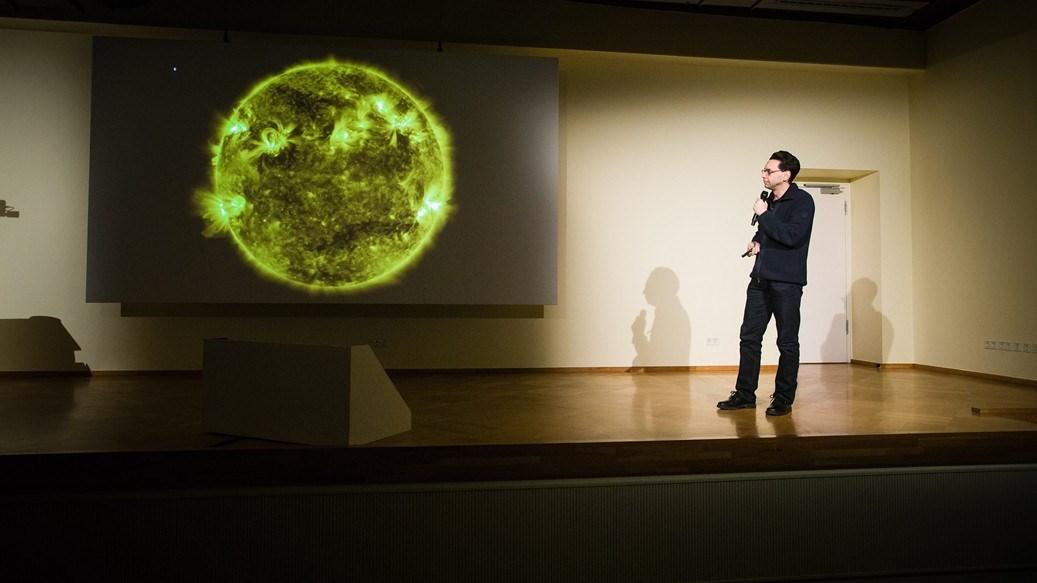 Dass zehn Minuten ausreichen, um auch ein astrophysisches Thema verständlich zu machen, zeigte Alexander Warmuth vom Leibniz Institut für Astrophysik in Potsdam, der seine Zuschauer auf die "Reise zu unserer stürmischen Sonne" mitnahm.