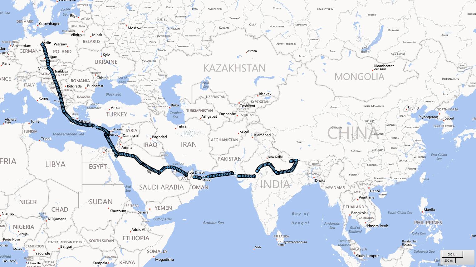 Zwei Wochen lang dauerte der Überführungsflug über Europa, Ägypten, die arabische Halbinsel, Pakistan und Indien bis nach Nepal.