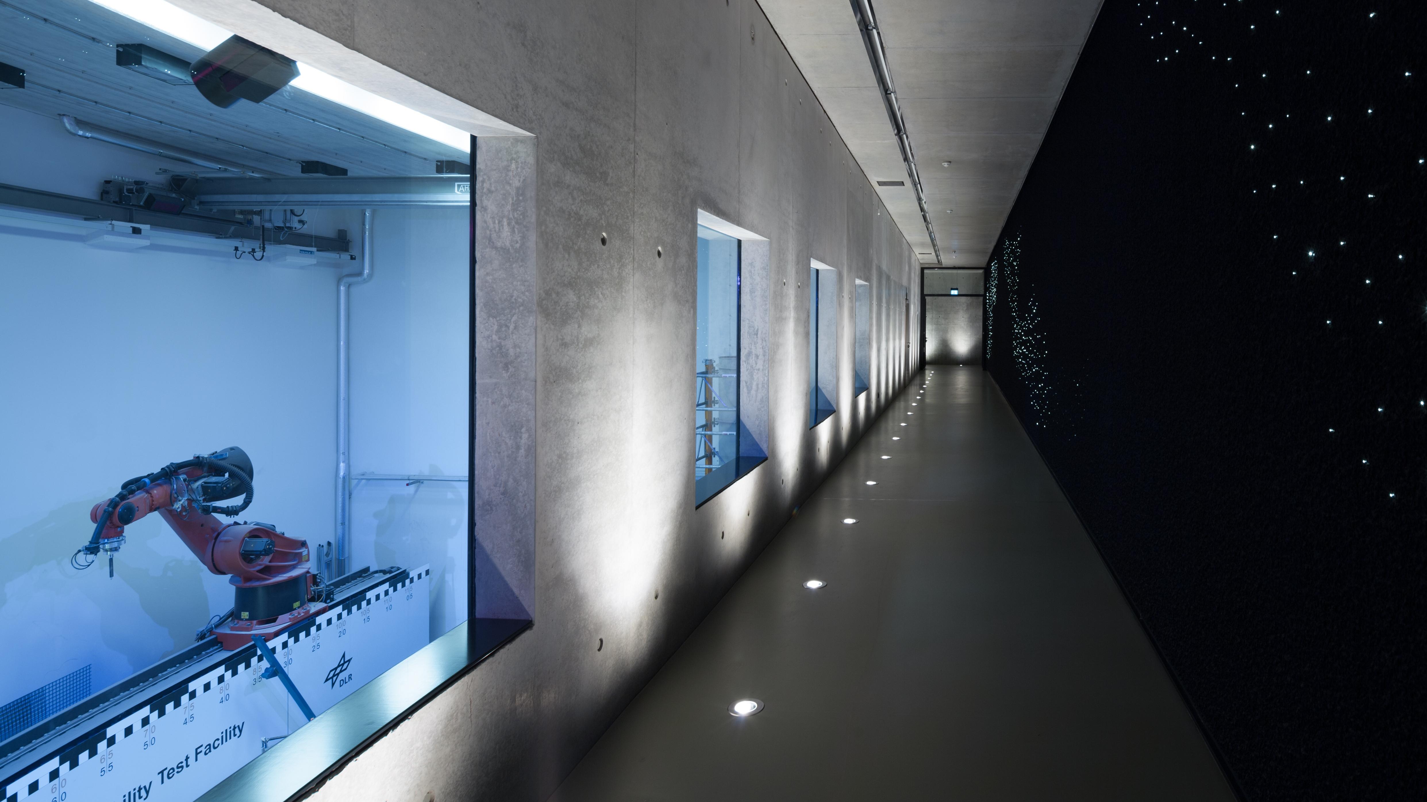 Ein barrierefreier Rundumgang im ersten Obergeschoss bietet auch Besuchern einen Einblick in die Labore und somit in die wissenschaftliche Arbeit der DLR-Forscherinnen und Forscher.