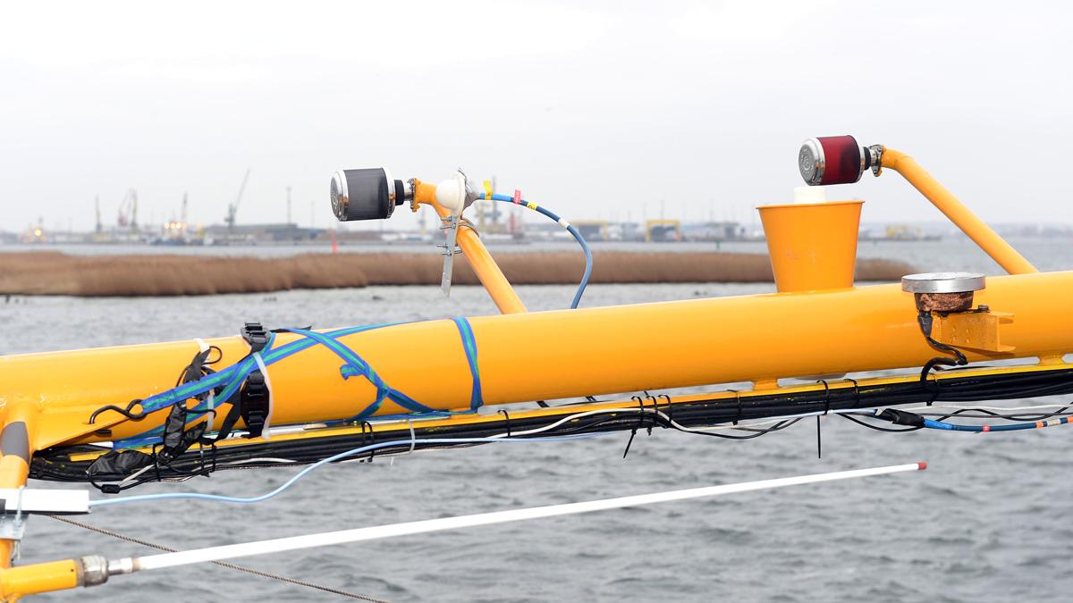 Klein aber fein: Der genutzte Frequenzbereich in 5GHz ermöglicht die Verwendung von kleinen Antennen. Die kleine runde weiße Antenne in der Mitte des Bildes kann bandbreitige maritime Kommunikation zwischen Schiffen und dem Hafen ermöglichen.