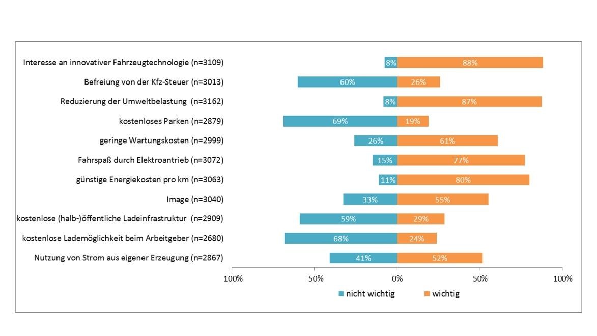 Die Grafik zeigt, die einzelnen Motive beim Fahrzeugkauf. Das Interesse an innovativer Fahrzeugtechnologie und die Reduzierung der Umweltbelastung liegen hierbei ganz vorn.