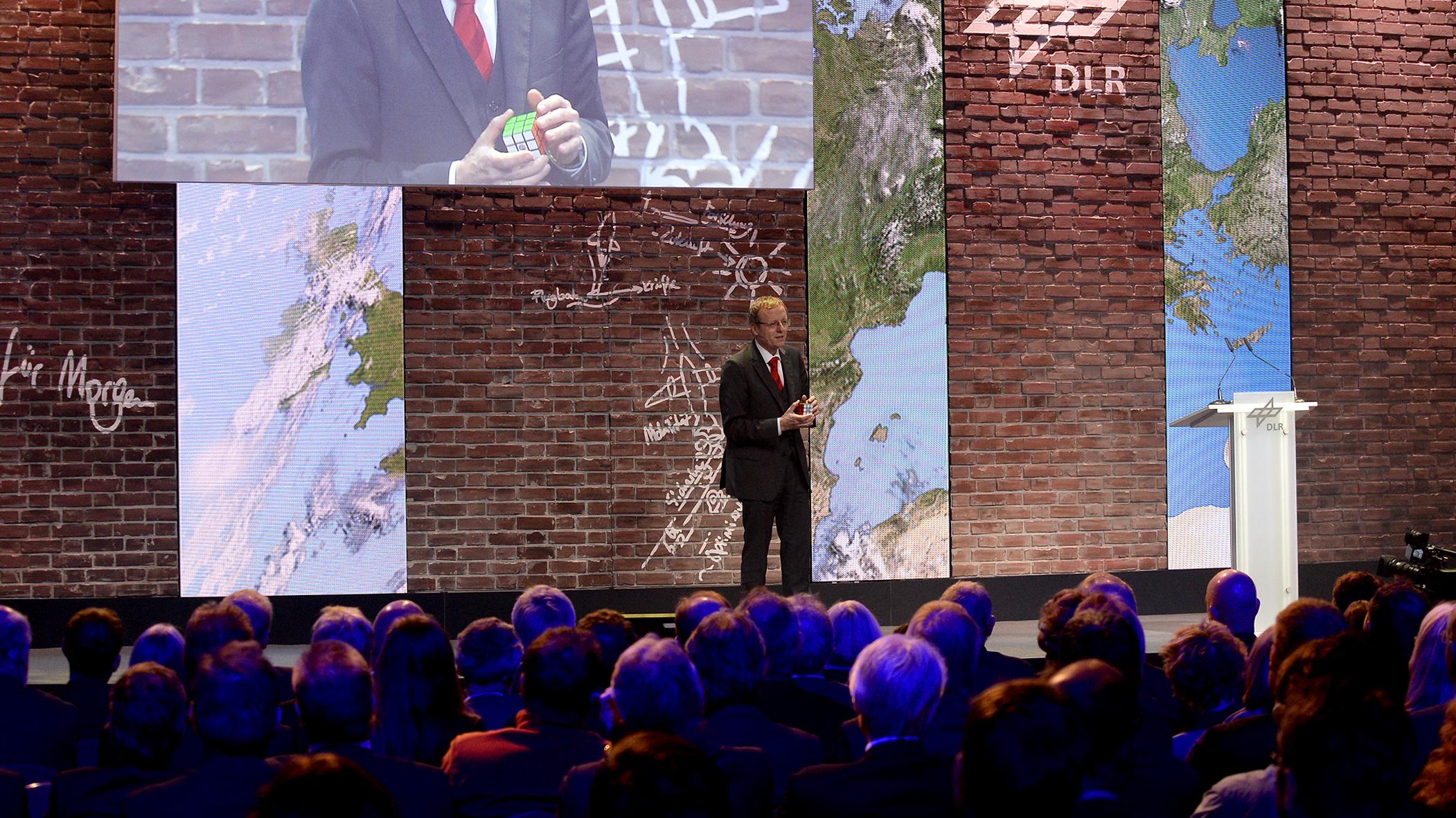 Auf seiner Jahreshauptversammlung blickt das DLR auf seine wichtigsten Projekte des abgelaufenen Jahres zurück. Regierungsvertreter aus Bund und dem jeweiligen Bundesland, an dessen DLR-Standort die JHV stattfindet, sind hier mit Grußworten präsent. 2014 findet zum ersten Mal in Bremen statt.