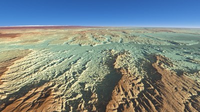 Dieses dreidimensionale Höhenmodell der Radarsatelliten-Mission TanDEM-X zeigt den Badlands-Nationalpark im Südwesten South Dakotas, eine für Landwirtschaft denkbar ungeeignete Verwitterungslandschaft, daher der Name Badlands (schlechtes Land). Der Film "Der mit dem Wolf tanzt" mit Kevin Costner in der Hauptrolle wurde 1990 zu großen Teilen im Nationalpark und dessen Umgebung gedreht.