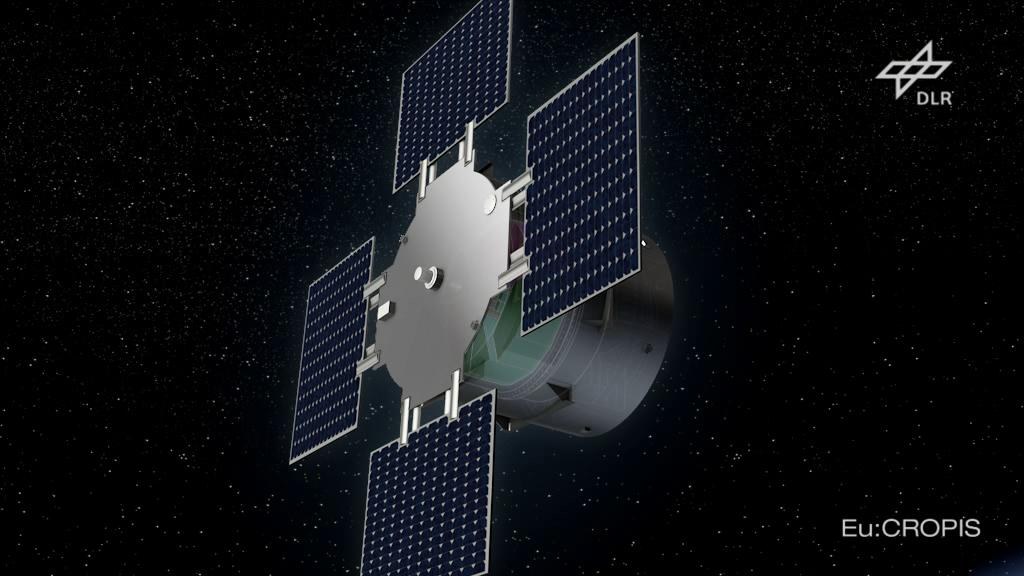Der Satellit Eu:CROPIS des Deutschen Zentrums für Luft- und Raumfahrt (DLR) soll 2017 starten. Mit an Bord: Zwei Gewächshäuser, in denen Bakterien und Algen künstlichen Urin in Dünger umwandeln, damit Tomatenpflanzen wachsen können. Durch eine unterschiedliche Rotationsgeschwindigkeit um die eigene Längsachse können die Schwerkraft von Mond und Mars simuliert werden.
