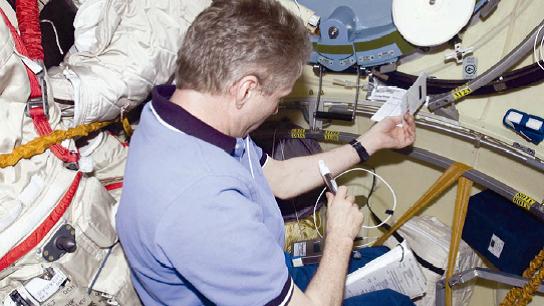 ESA-Astronaut Thomas Reiter führte während der Astrolab Mission das SkinCare-Experiment durch