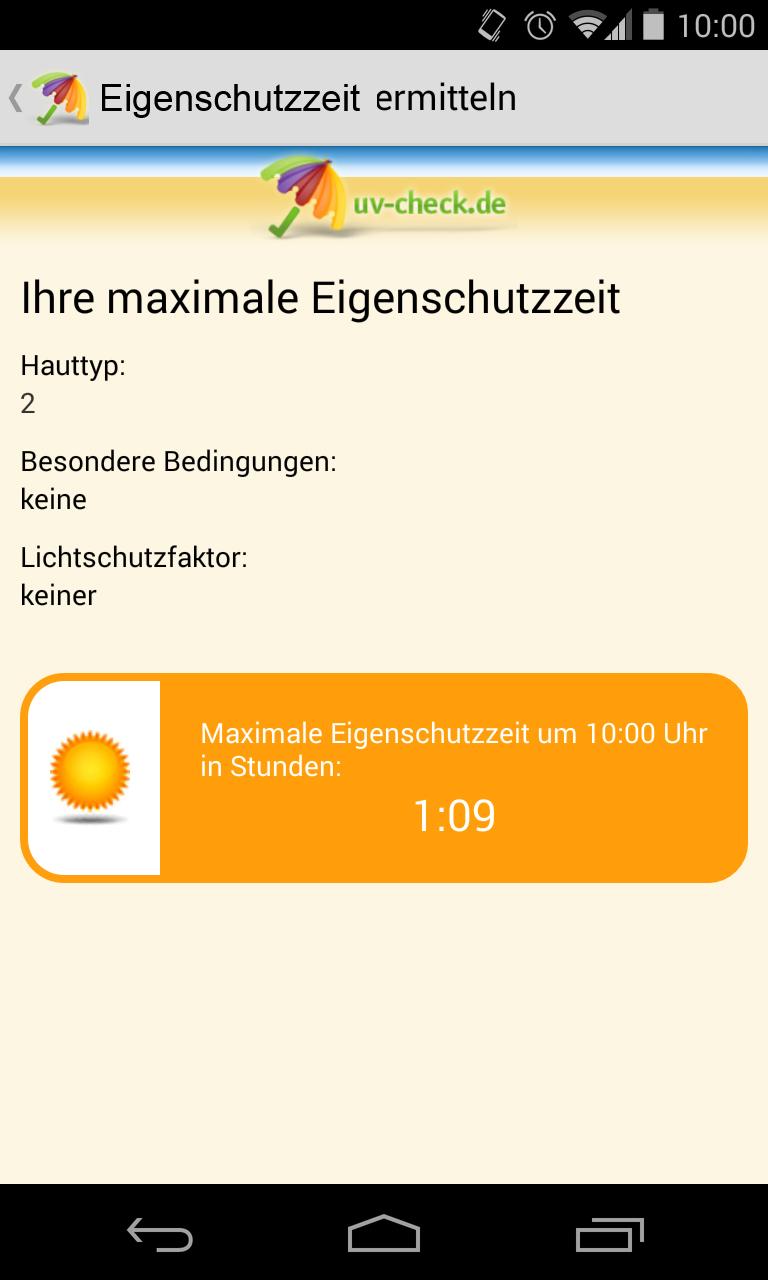 Ausgabe der UV-Check App für eine beispielhafte Nutzeranfrage am
