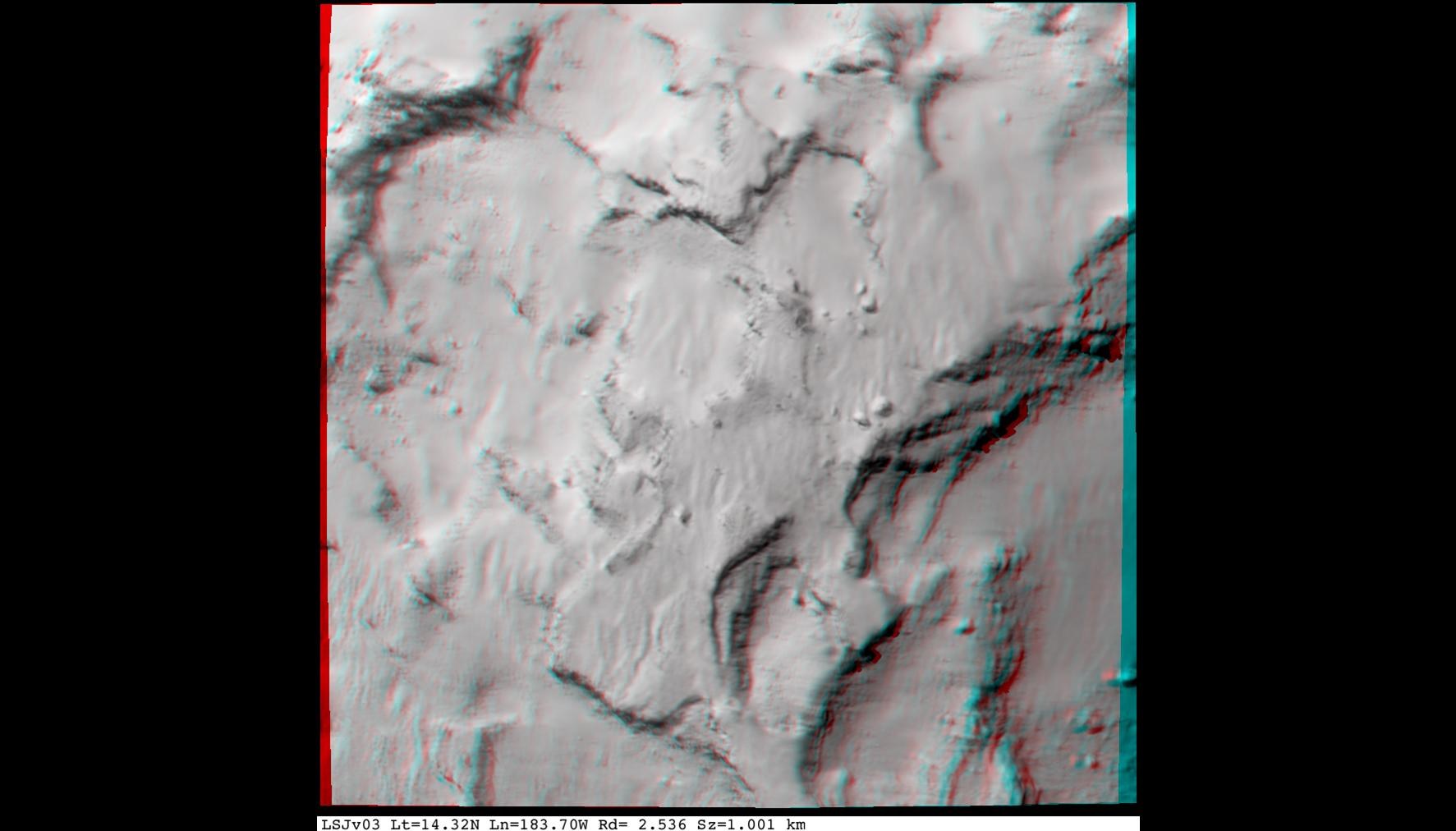 Die 3D-Aufnahme von Landeplatz J für den Lander Philae der Rosetta-Mission zeigt, dass sich nur wenige steile Hänge in der Lande-Ellipse befinden.