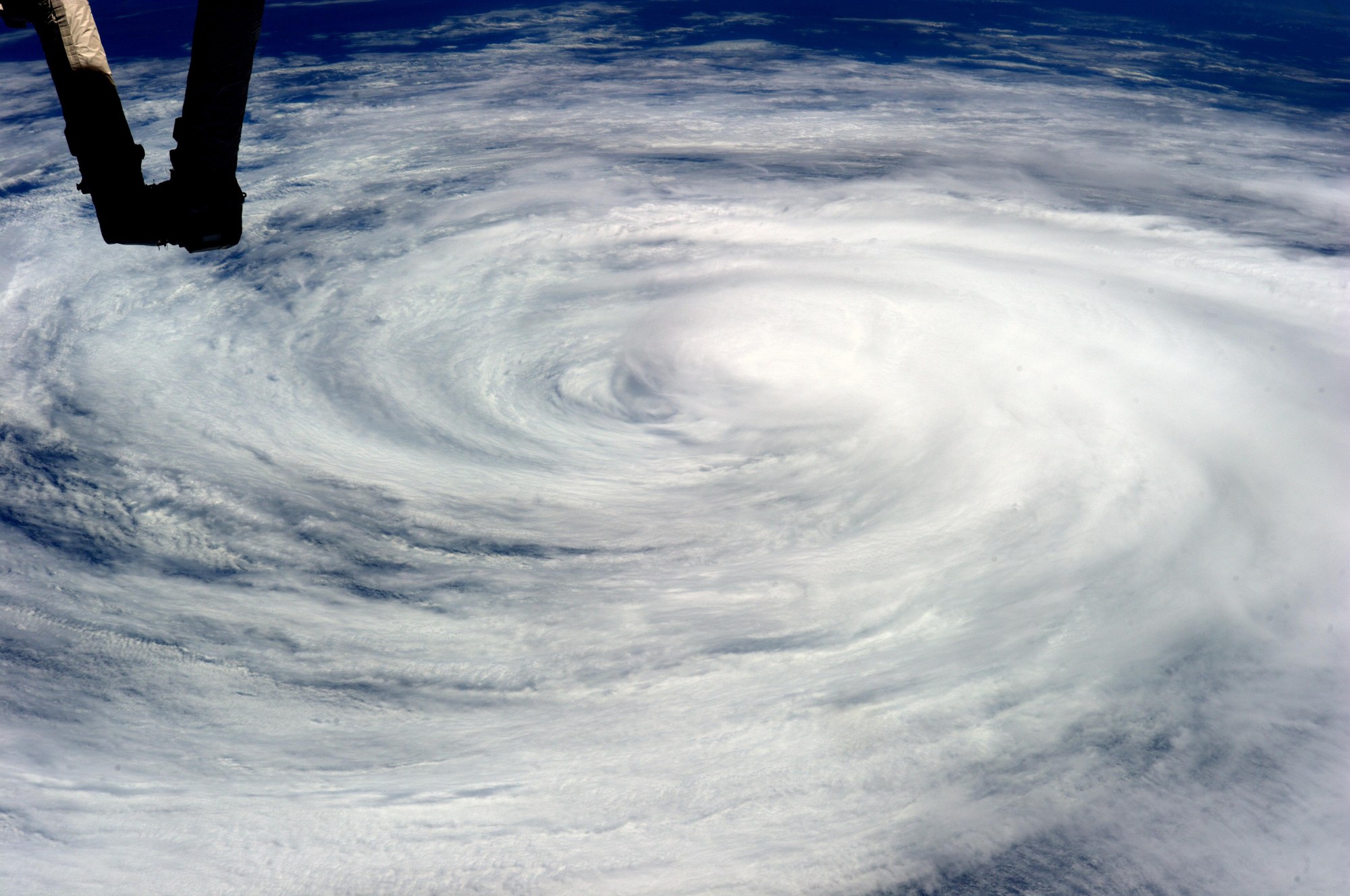 Nahaufnahme des Tropensturms Marie am 27. August 2014 von Alexander Gerst. Der deutsche Astronaut befindet sich seit dem 29. Mai 2014 an Bord der Raumstation ISS.