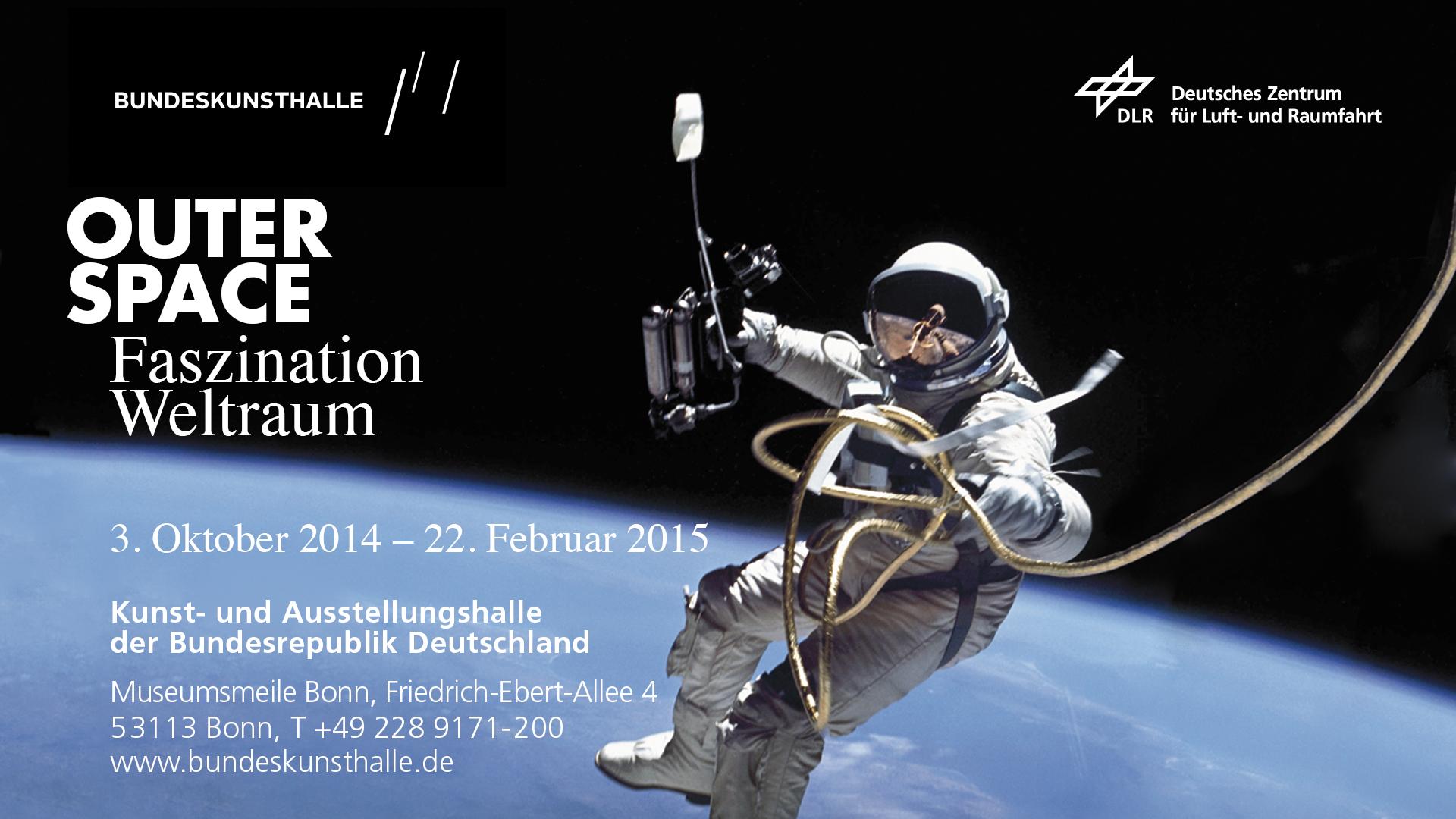 OUTER SPACE - Faszination Weltraum vom 03.10.2014 bis zum 22.02.2015 in der Bundeskunsthalle in Bonn: Zwölf assoziativ gestaltete Räume zeigen Objekte aus der Raumfahrt, wissenschaftliche Exponate und Science-Fiction bis hin zu Positionen der Kunst aus Vergangenheit und Gegenwart.