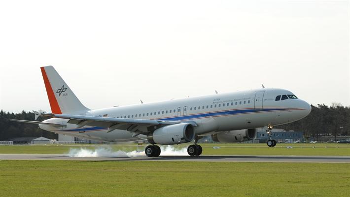 Mit dem DLR-Forschungsflugzeug ATRA - hier bei einer Landung am Flughafen Braunschweig-Wolfsburg - werden die Flugversuche durchgeführt.