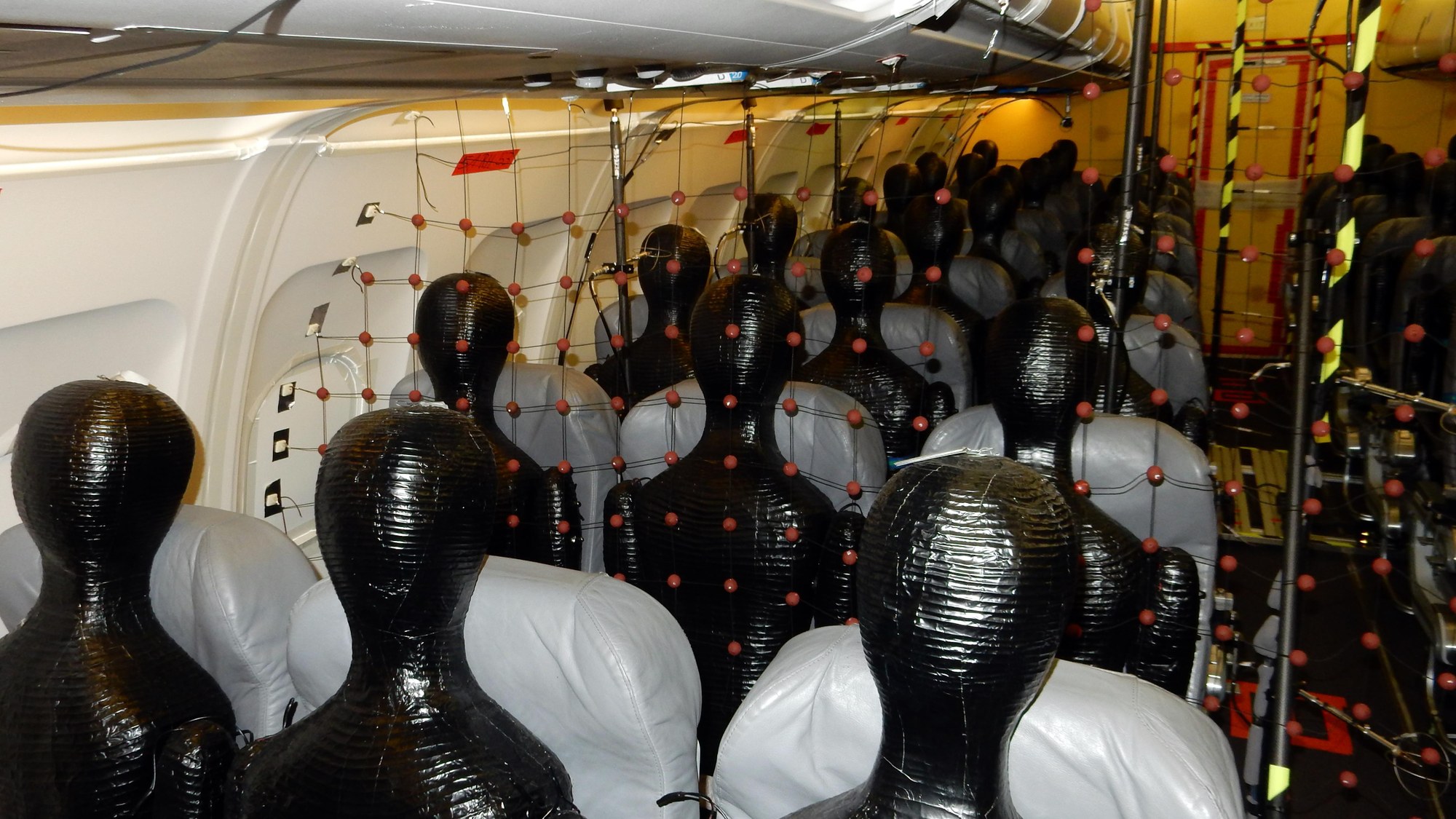 Die Wissenschaftler nutzen für die Kabinenforschung Dummies, die aus einem speziellen High-Tech Materialmix bestehen. Diese werden mit genau definierter Leistung beheizt. So erreichen sie eine sehr ähnliche thermische Signatur wie die eines realen Menschen.