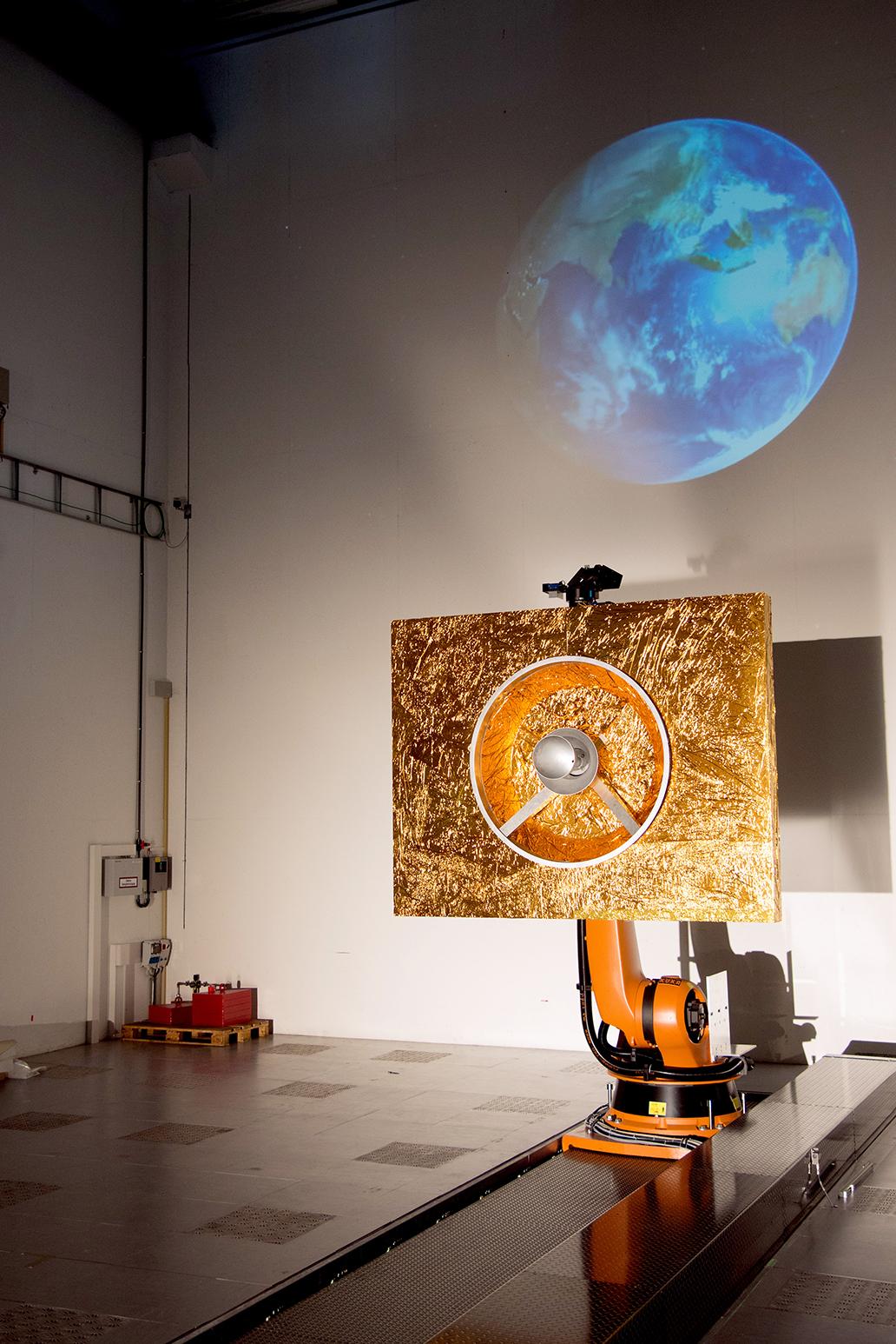 Versuchsanlage EPOS (European Proximity Operations Simulator) des DLR. Damit können funktionslose Satelliten erfasst, angetrieben und gesteuert werden.