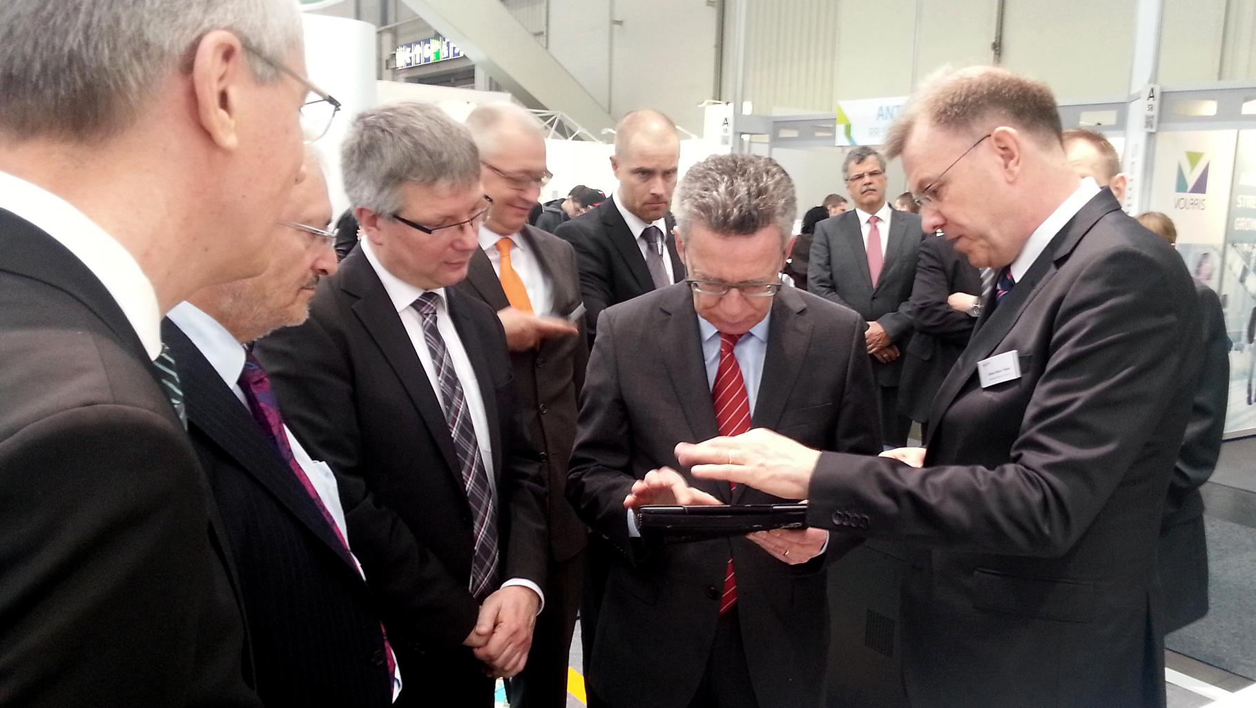 Bundesinnenminister de Maizière testet die mobilen ZKI-Anwendungen