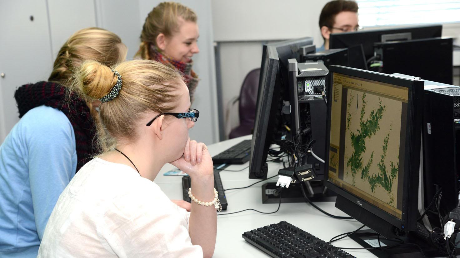 Im DLR_School_Lab Oberpfaffenhofen verwandelten die Jugend-forscht-Gewinner Rohdaten von Satelliten in anschauliche Bilder.