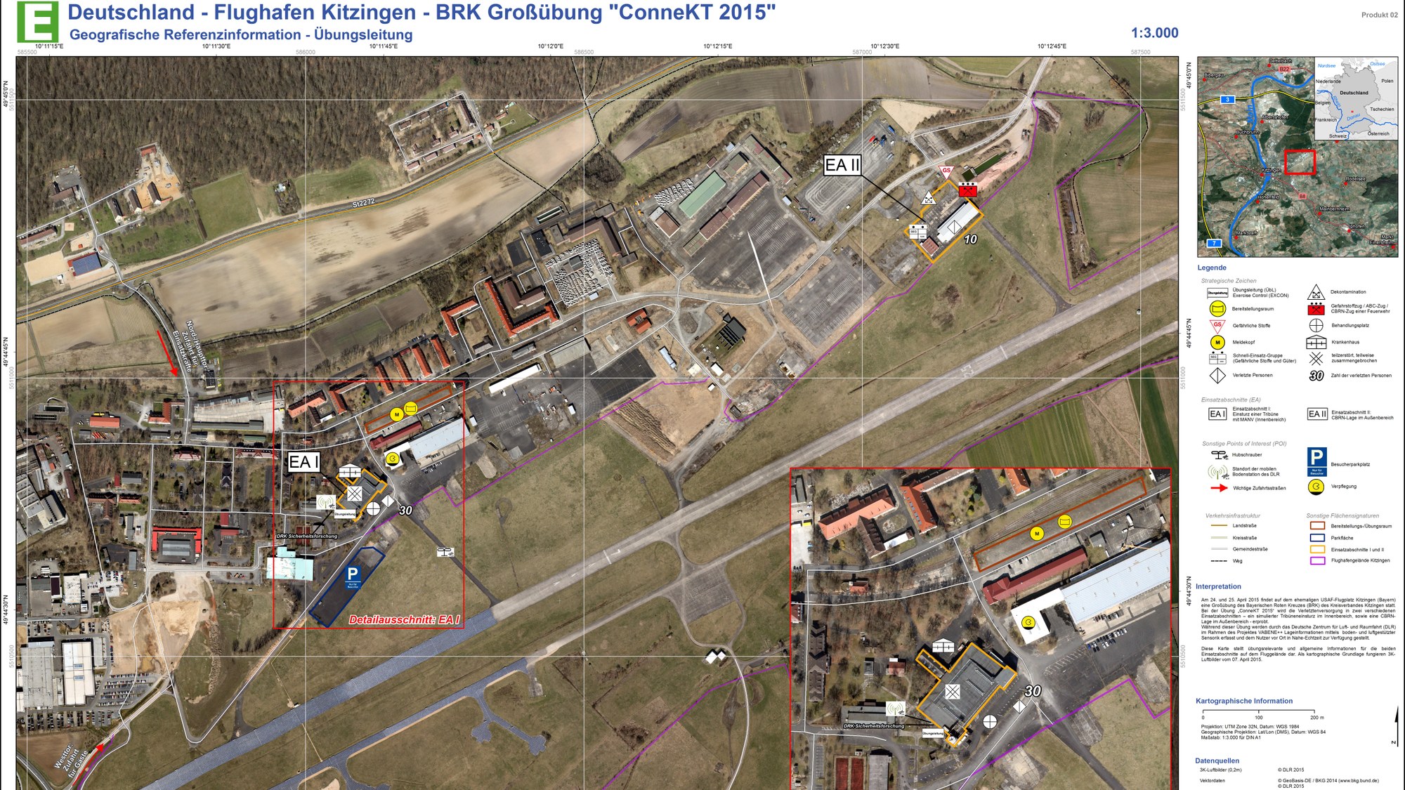 Aktuelle Lagekarte des Übungsgebietes mit hinterlegten taktischen Informationen für die Einsatzkräfte.