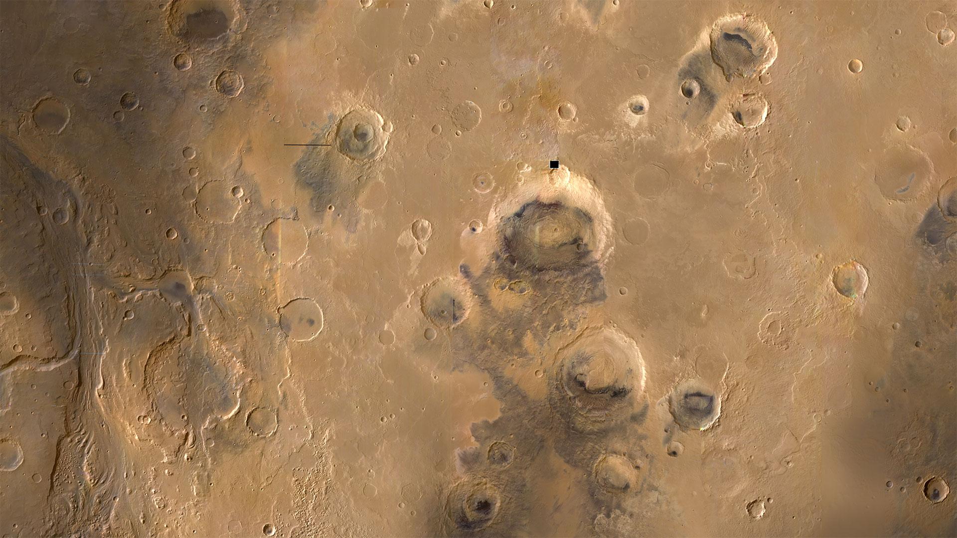 Aus 89 einzelnen Bildstreifen, die mit dem vom DLR betriebenen Kamerasystem HRSC (High Resolution Stereo Camera) aufgenommen wurden, berechneten Wissenschaftler des DLR, der Freien Universität Berlin und der Leibniz Universität Hannover ein flächendeckendes Mosaik der Marsoberfläche im Kartenblatt "MC-11 Ost". Das Bild zeigt den südwestlichen Ausschnitt dieses Mosaiks, das insgesamt eine Fläche von 2,3 Millionen Quadratkilometern aufweist, eine Fläche fast sechsmal größer als Deutschland. Links unten, im Südwesten, sind der Oberlauf und zwei große Seitenarme des Abflusskanals Ares Vallis zu sehen. Die dunklen Flächen in und um einige große Einschlagskrater von 100 und mehr Kilometern Durchmesser rühren von Dünenfeldern aus dunklen, vulkanischen Ablagerungen her. Die Bildauflösung in den Mosaiken beträgt 10 bis 50 Meter pro Bildpunkt. Vereinzelt sind noch kleine Bild- und Übertragungsfehler und atmosphärische Störungen im Mosaik vorhanden, die in der verbleibenden Missionszeit von Mars Express bis Ende 2018 durch neue Daten verbessert werden sollen.