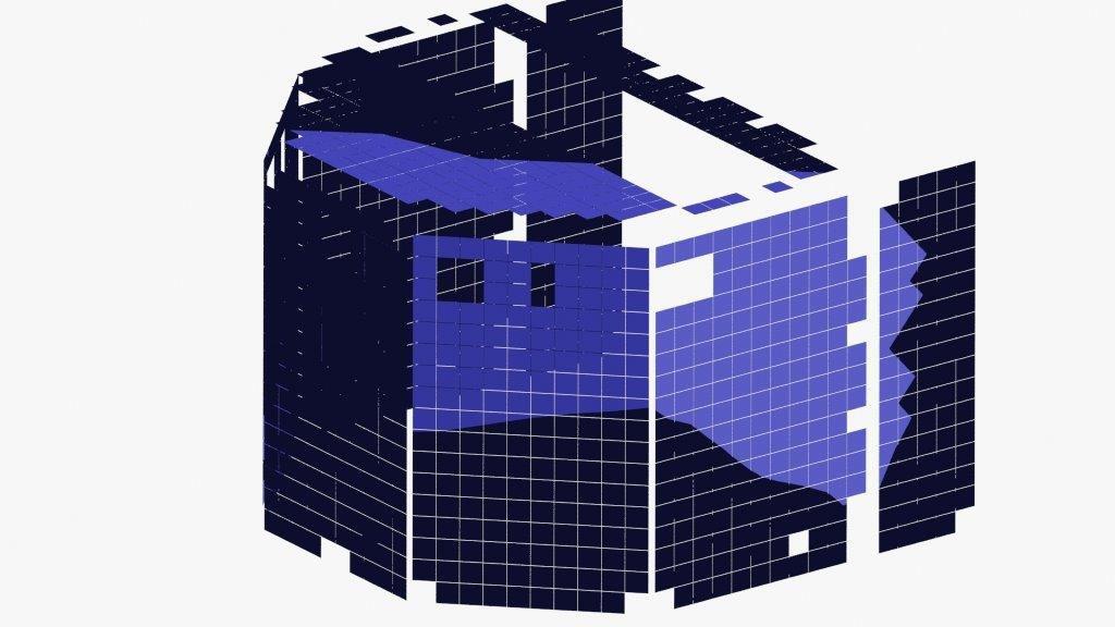 Diese Grafik des Deutschen Zentrums für Luft- und Raumfahrt (DLR) zeigt, wie die Sonne am 13. Dezember 2014 das Landegerät Philae beleuchtete. Diese Angaben sind wichtig, um mögliche Aufnahmen von Philae an seinem Standort zu überprüfen. In diesem Fall wäre lediglich der blau dargestellte Bereich seiner Solarpanele von der Sonne angestrahlt. Philae wäre daher auf einer Aufnahme auch nur wenige helle Pixel groß.