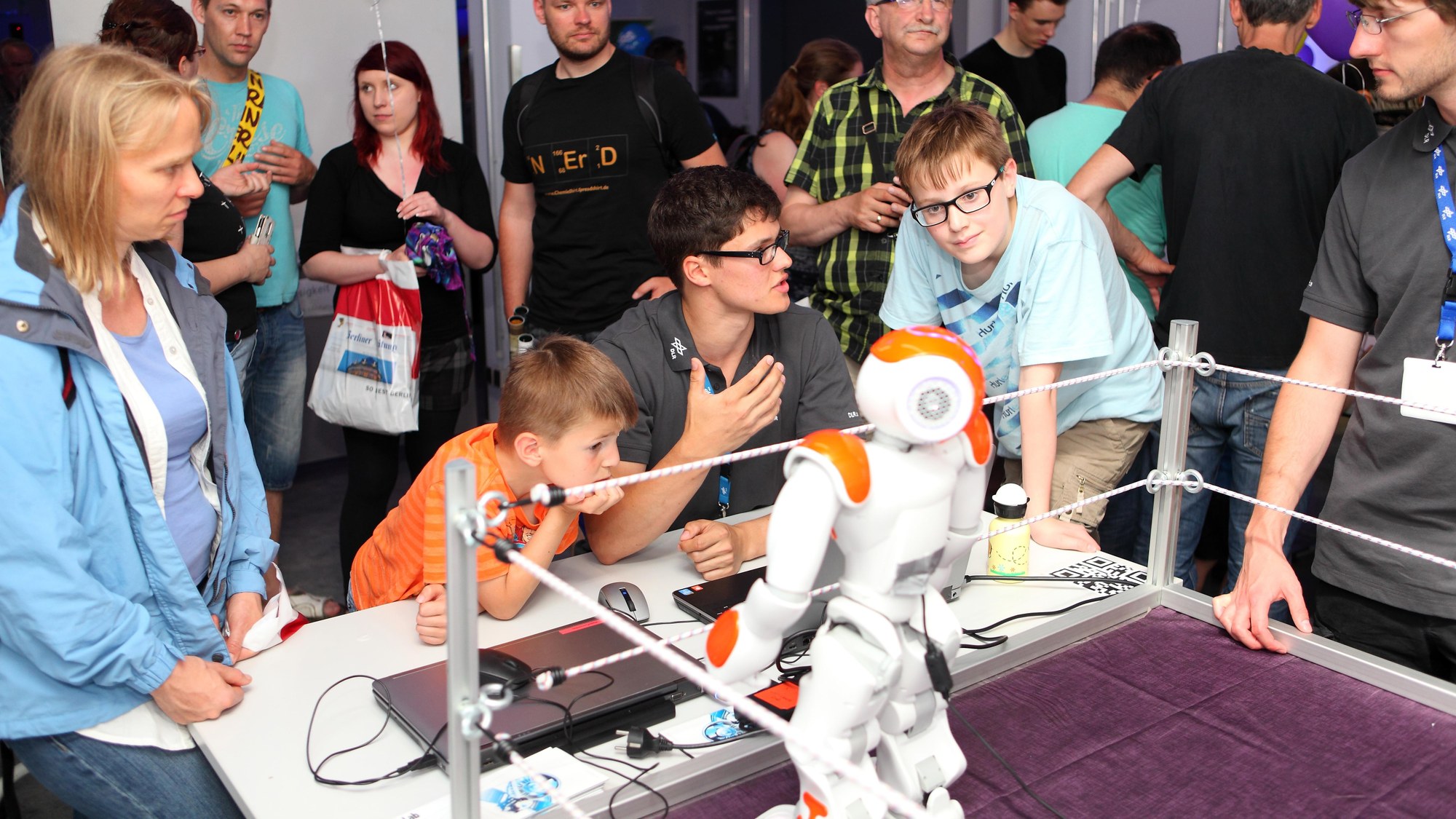 Die beiden humanoiden Roboter Maria und Marvin sind unermüdlich im Einsatz für die Nachwuchsförderung. Sie können über eine grafische Benutzeroberfläche oder direkt mit Python oder C++ programmiert werden.