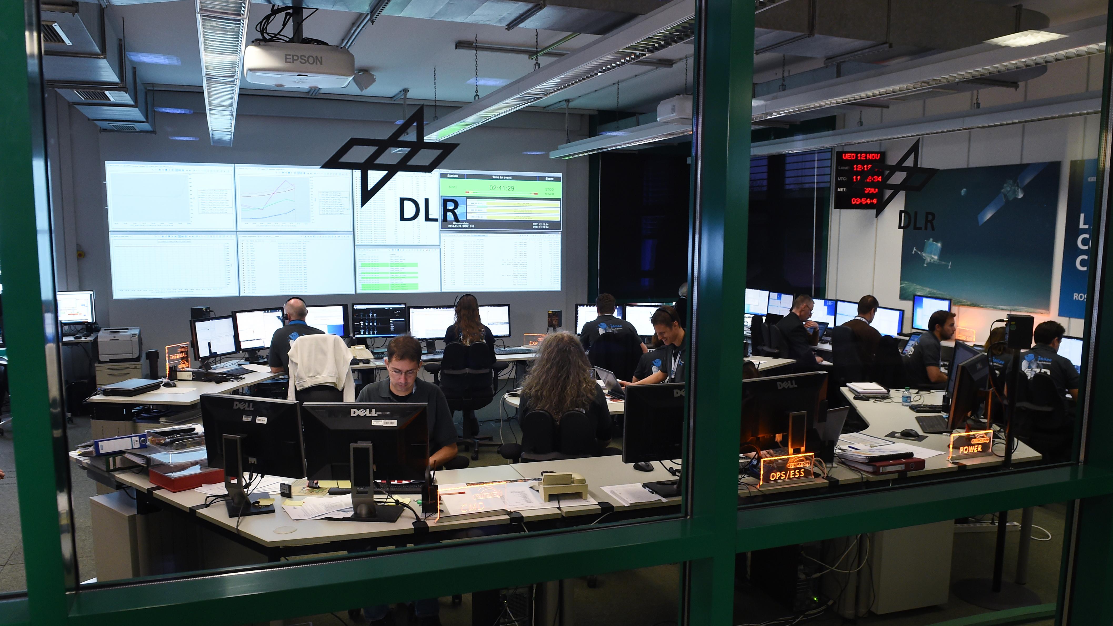 Aus dem Lander-Kontrollzentrum des Deutschen Zentrums für Luft- und Raumfahrt (DLR) wird Philae auf dem Kometen Churyumov-Gerasimenko betrieben und gesteuert. Das Foto zeigt das DLR-Team am 12. November 2014, am Tag der Landung von Philae.