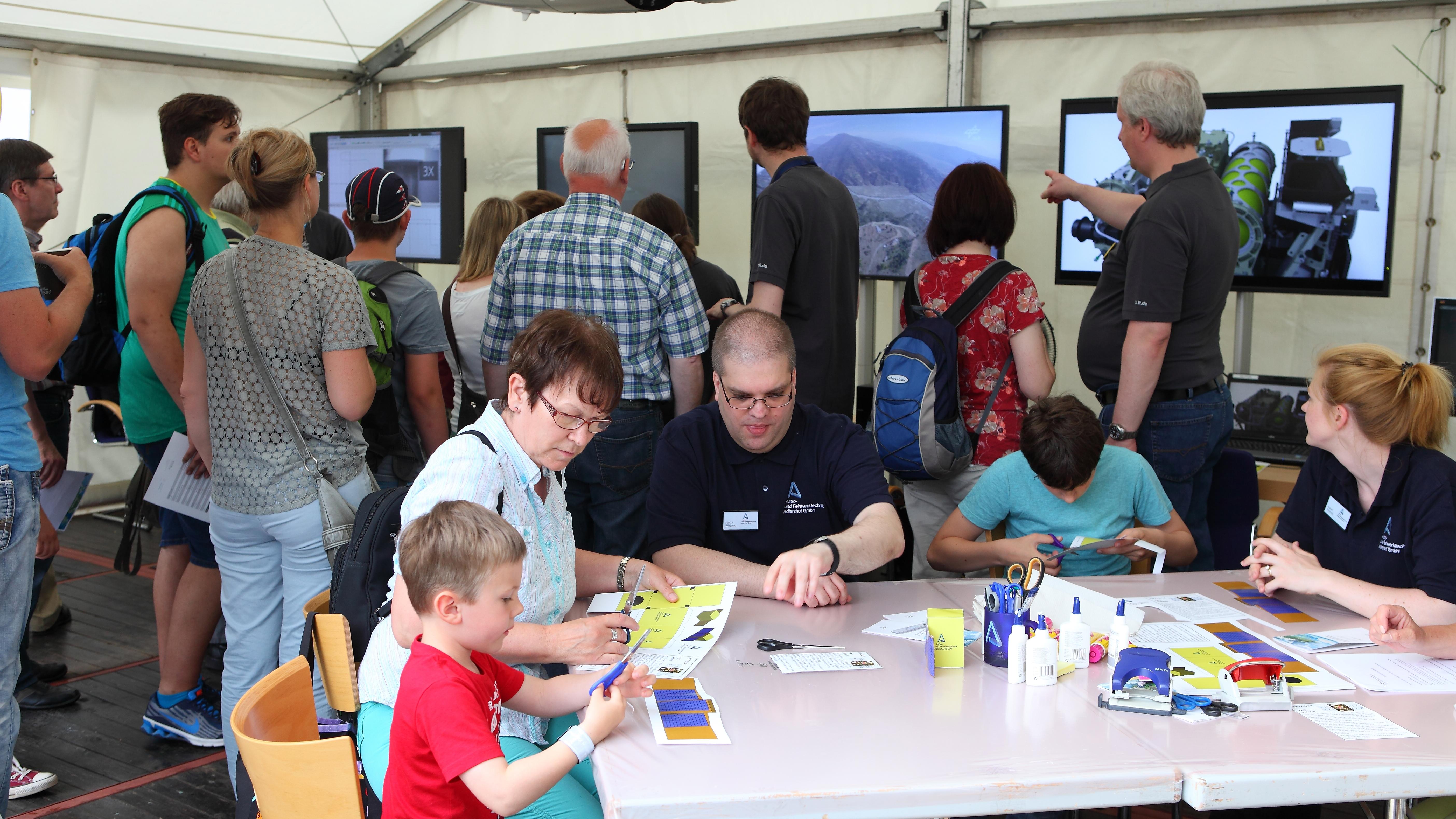 Beim Stand des DLR-Instituts für Optische Sensorsysteme gab es, neben der 3D-Befliegung des Himalaya, auch eine Satelliten-Bastelstation.
