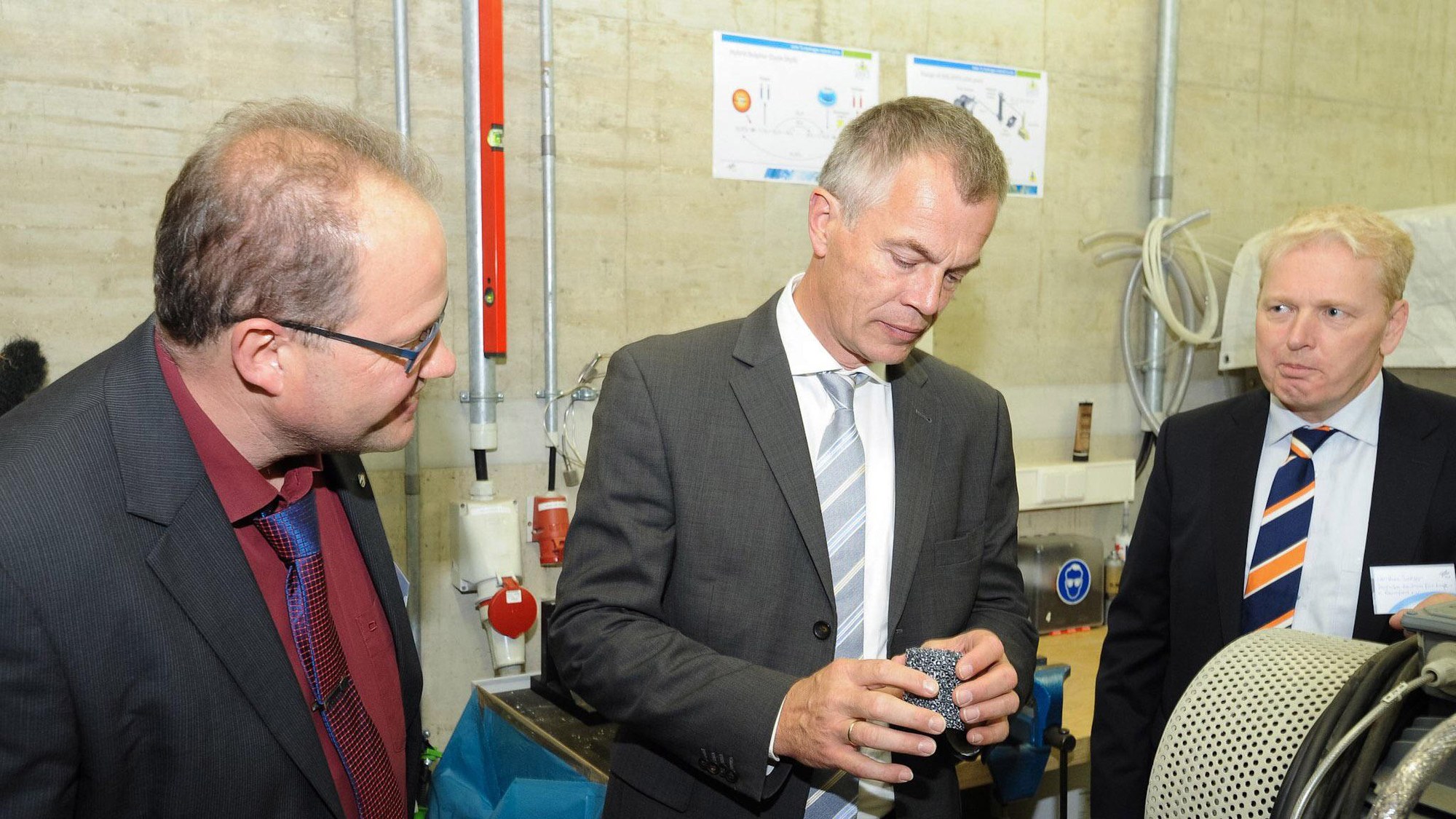 Umweltminister Johannes Remmel (m) auf der Forschungsebene des DLR-Solarturms