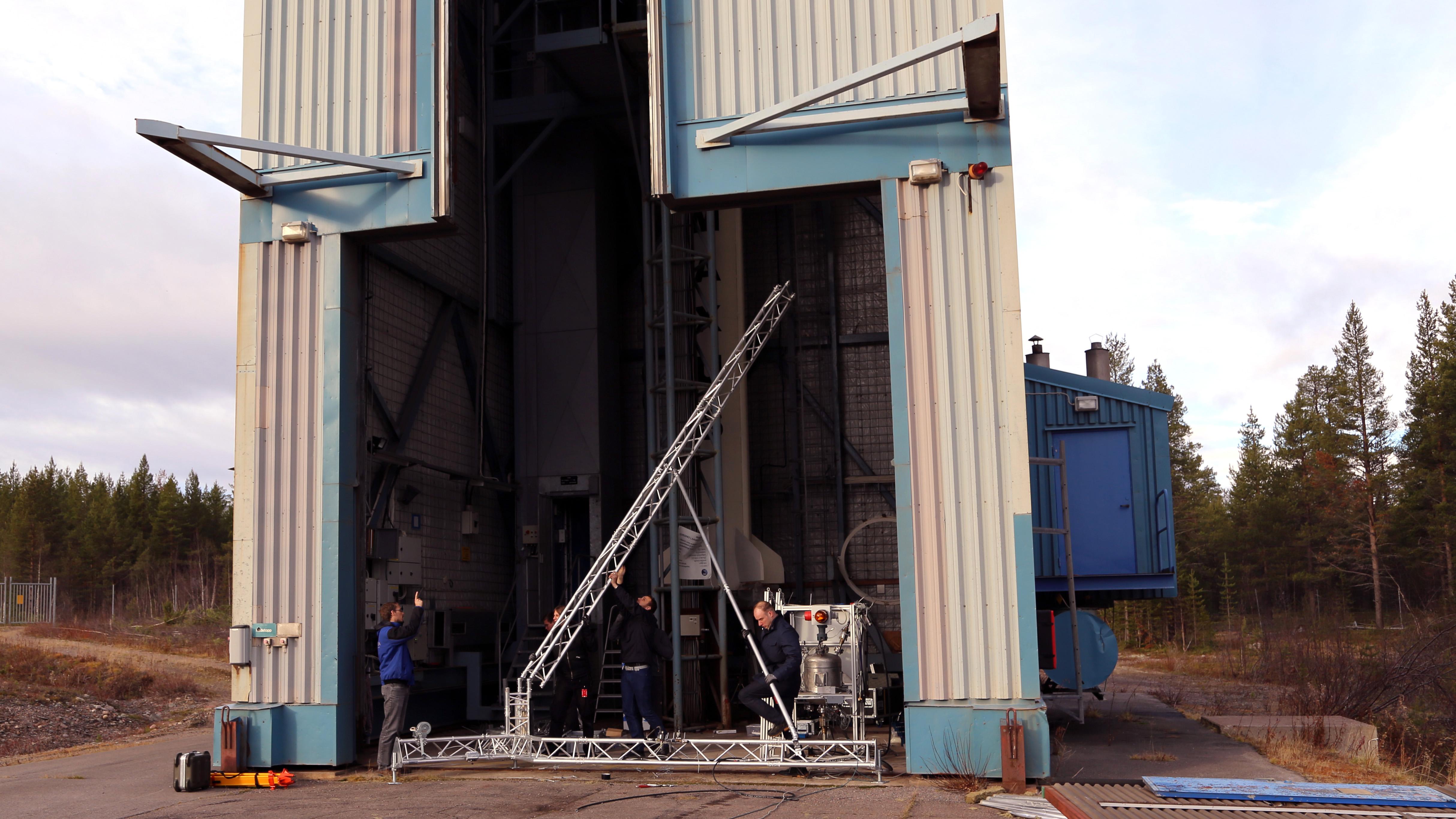 In dem Turm, in dem normalerweise die MAXUS-Höhenforschungsraketen starten, bauen die Braunschweiger Studenten die Startrampe für ihre FAUST-Rakete auf.