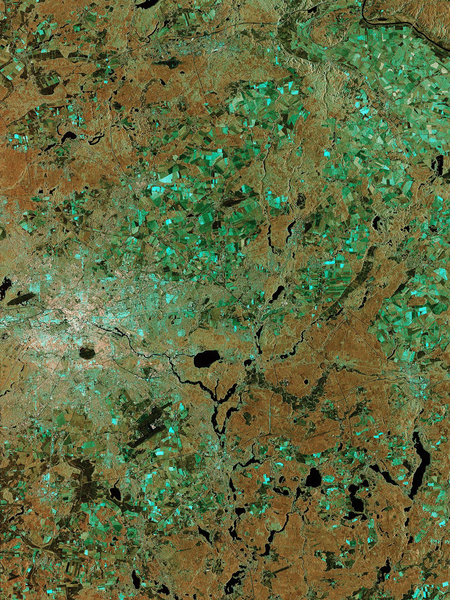 Dieses Bild von Berlin ist vor einem Jahr, am 28. November 2014, vom ersten Erdbeobachtungssatelliten der Sentinel-Familie, Sentinel-1A, aufgenommen worden. Die Sentinel (Wächter)-Satelliten sind ein wesentlicher Teil des Copernicus-Programms der Europäischen Union und Basis für die Aufnahme und Lieferung umfassender, kontinuierlicher Erdbeobachtungsdaten für das Monitoring von Klima, Umwelt, Meeresoberflächen, Landwirtschaft, Schiffsverkehr, Krisen und Katastrophen.