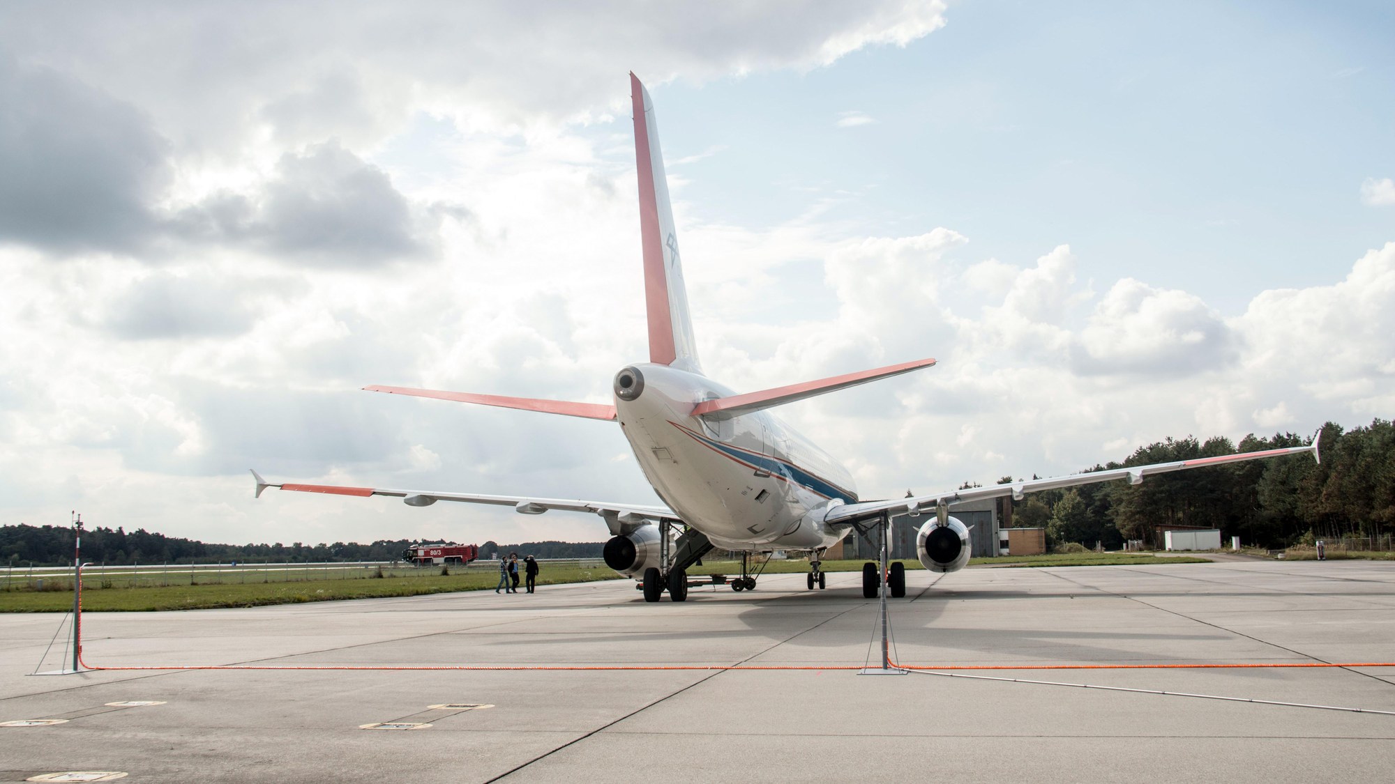 Nach jedem Flug werden die Triebwerksemissionen ergänzend am Boden gemessen. Im Vordergrund sind zwei Messfühler zu erkennen.