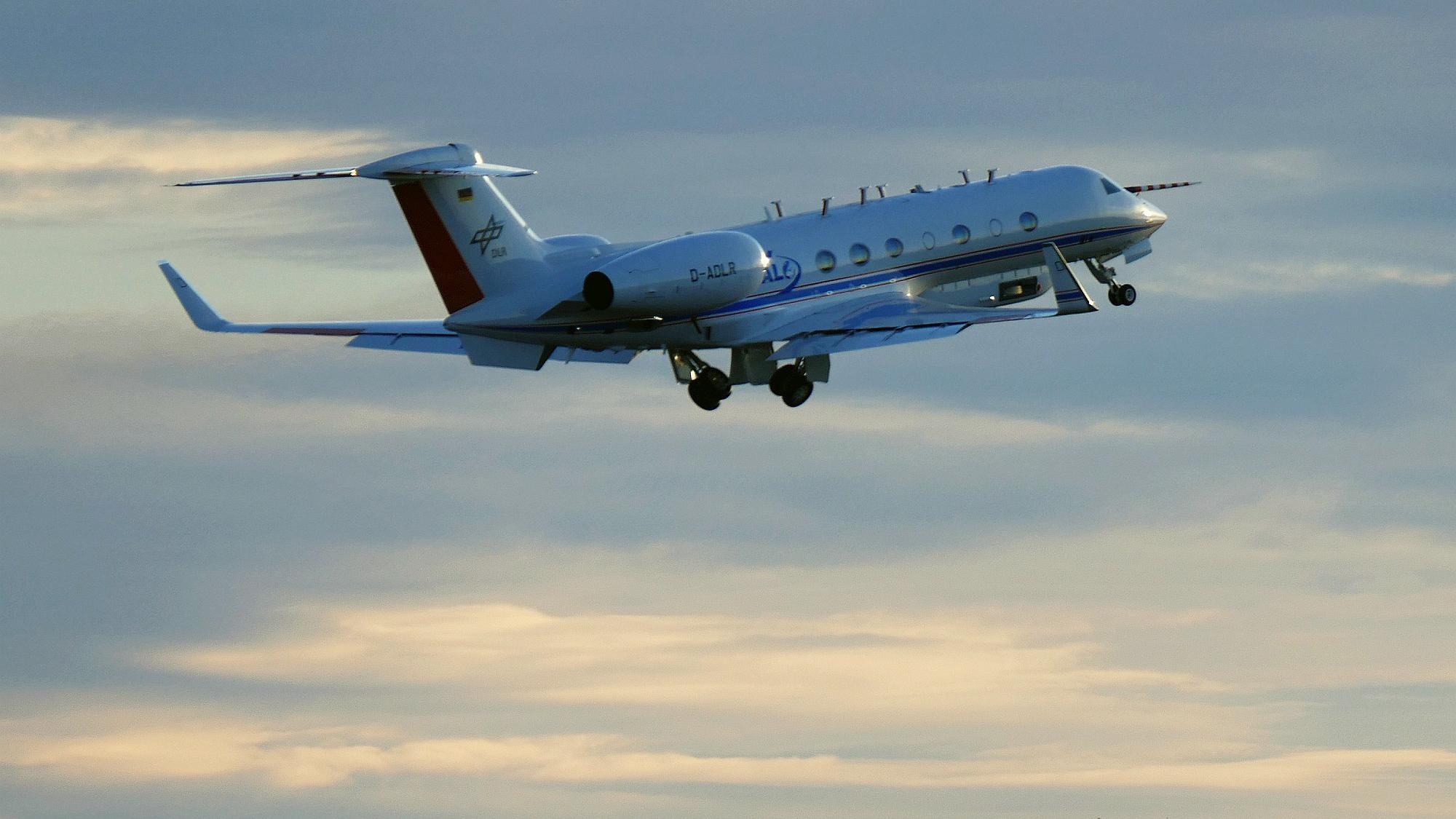 Das vom Deutschen Zentrum für Luft- und Raumfahrt (DLR) betriebene Atmosphärenforschungsflugzeug HALO startet vom Standort in Oberpfaffenhofen aus.