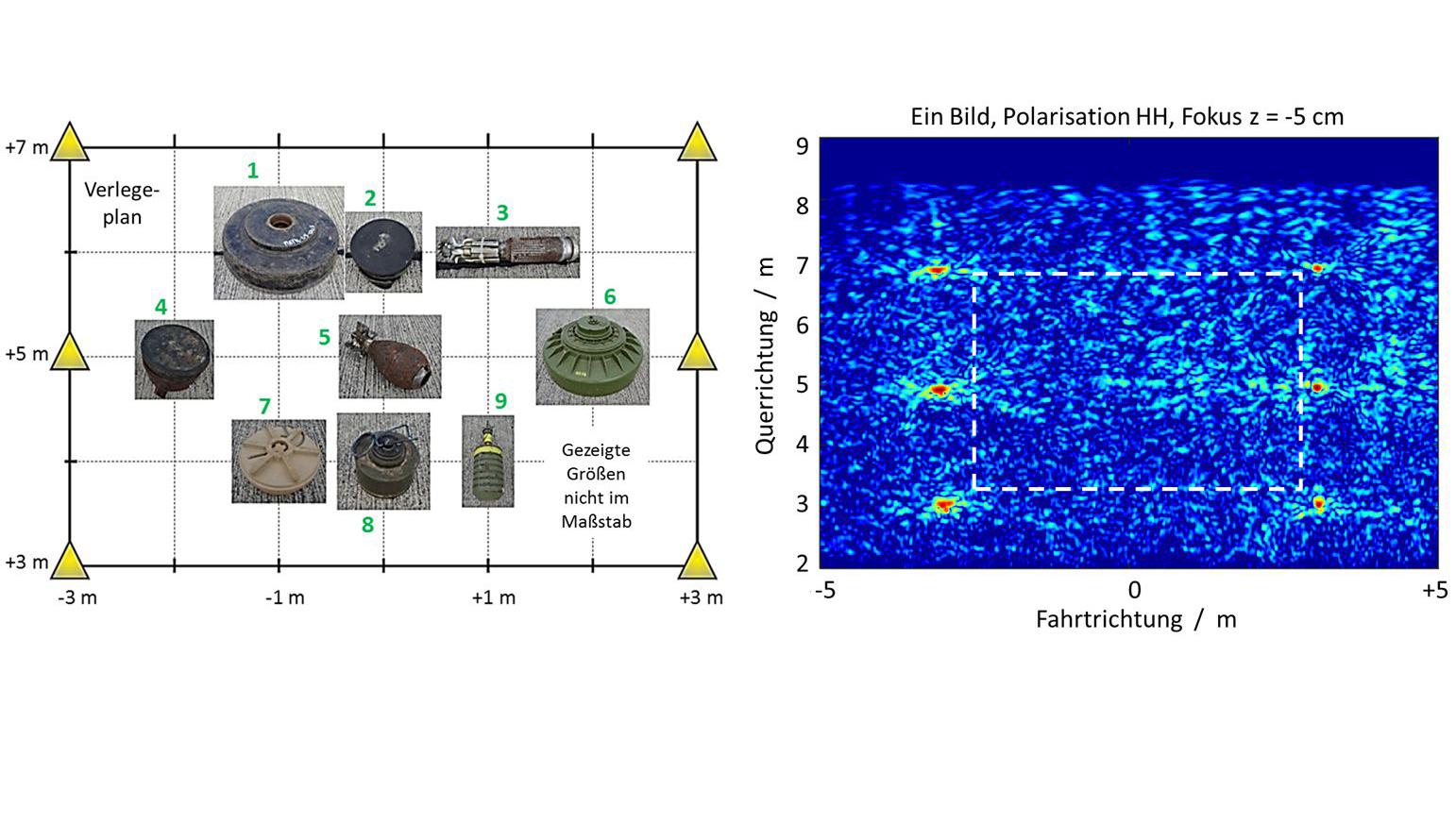 Beispiel für ein Messszenario mit typischen vergrabenen Objekten wie Minen oder Granaten: